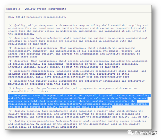 1.前言管理评审是为评估质量管理体系的适宜性、充分性和有效性所进行的活动。管理评审也是了解公司管理现状、运营情况、流程业绩、发展趋势的机会。借助管理评审的机会,公司领导层向各部门传递对质量管理的态度,明确体系、产品、流程改进的需求和方向,各部门利用这个机会争取相关资源。管理评审背后的主要驱动因素是监管机构期望高管层参与公司质量管理体系的建立、实施和管理,以确保有效性。管理评审类似我们个体的健康体检,不管身体如何,最好每年参加体检,管理评审也是要每年至少举行一次;当发现不健康征兆时,要增加体检,同样的,当公司遇到特殊情况(如国抽不合格)也需要增加管理评审。2.法规标准要求从ISO13485等同转化的标准《GBT 42061-2022 医疗器械质量管理体系 用于法规的要求》对管理评审文件、记录、评审的输入和输出做了详细要求。 21CFR820(美国医疗器械质量管理体系法规要求)的管理职责中也对管理评审有要求,