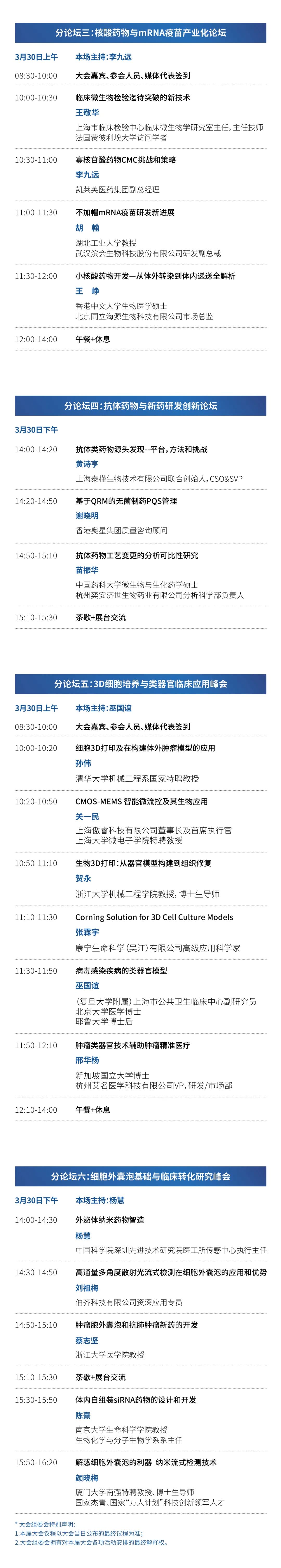 会议时间:2023年3月29-30日 会议地点:上海建工浦江皇冠假日酒店 组织单位 2023年3月28日14:00 【会议举办时间】 2023年3月29日08:30-17:30 2023年3月30日08:30-17:30 赞助商签到: 3月28日14:00 以后、3月29日以及3月30日早上 07:00-09:30 可以进行赞助商签到并且领取贵司的会议资料和参会证件。 听众签到: 3月29日早上08:30-09:30或3月30日早上08:30-10:00。发票请于任意午休期间至签到台领取,每天上午08:30-10:00前的签到高峰时间段恕不接待发票领取事宜。 演讲嘉宾签到: 3月29日或3月30日早上08:30-09:30。请务必至少在您的演讲前2小时完成签到。签到后会有工作人员带您进入会场嘉宾席。 订房链接如下: https://www.crowneplaza.com/redirect?path=asearch&brandCode=CP&localeCode=zh®ionCode=280&hotelCode=SHGPU&checkInDate=28&checkInMonthYear=022023&checkOutDate=30&checkOutMonthYear=022023&rateCode=6CBARC&_PMID=99801505&GPC=BG8&cn=no&viewfullsite=true 咨询电话021-33293688转预订部 欲了解更多生物医学领域政策、资讯、会议信息 欢迎扫描二维码关注 |