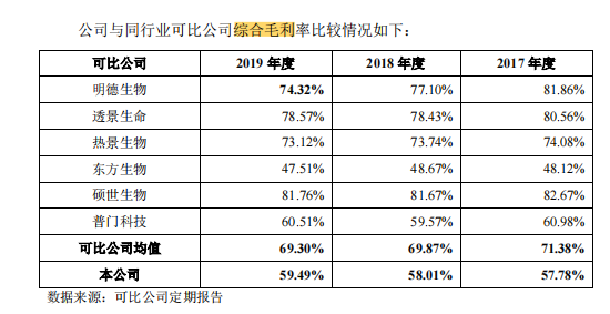 毛利率较为薄弱的局面未改善,来自招股书显示,2017-2019年可比公司毛利率的均值分别为 71.38%、69.87%及 69.30%,赛科综合毛利率分别为 57.78%、58.01%和 59.49%。2020-2021年综合毛利率分别为60.15%、60.13%,平均每年不到1个点,进度较为缓慢。产品结构的差异未得到改善。