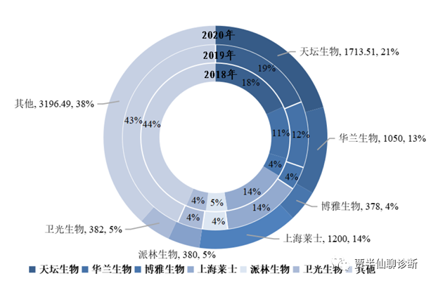2018-2020年血站中各厂家核酸检测人份数的占比