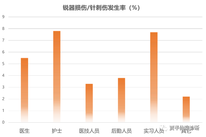 - 05 - 中国锐器损伤事件的数量是美国的10倍 锐器损伤/针刺伤是当今医务工作者面临的严重职业危险因素之一,可引起血源性疾病的传播,威胁着医务人员生命健康和职业安全,给暴露者带来极大的精神心理压力,也给医疗卫生机构和暴露者带来沉重的经济负担。