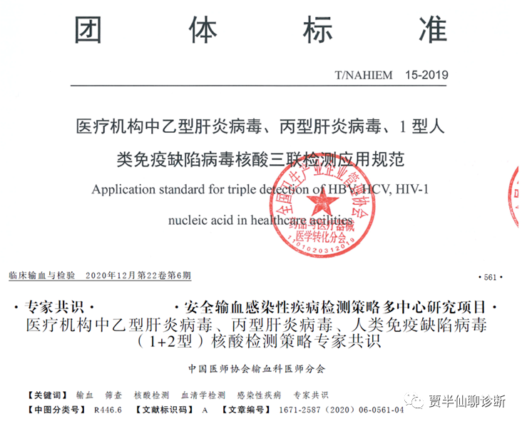直接套用《医疗机构中乙型肝炎病毒、丙型肝炎病毒、1型人类免疫缺陷病毒核酸三联检测应用规范》团体标准的说明:适用于在各级医疗机构中接受门诊处置、住院治疗的患者以及在有感染HBV、HCV、HIV风险的高危人群中筛查。