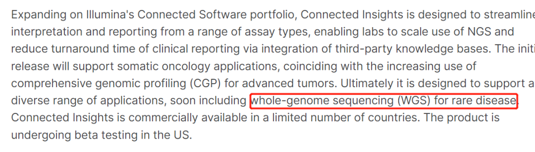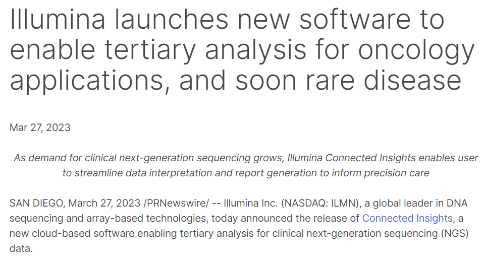 业界传闻,做NGS检测,家里没几个靠谱的生信,那基本玩不转。 即便转起来,也是磕磕绊绊,困难总比方法多。 而生信,也一直是困扰大多数NGS检测企业的一个顽疾。 没办法,生信生信,既要懂生物学又要懂信息学,一个人拿两份钱,这很合理吧? 而现在,这些NGS检测公司恨不得一毛钱掰成两半花,有多肉疼不用我多说了吧。 那么,现在,它来了。 More than Connected 2022年3月27日,Illumina官方宣布最新开发的基于云端的用于NGS三级分析的套件Connected Insights发布。 该款软件被设计为用于肿瘤测序的三级分析,支持检测包括SNV/indel/CNV/SV/Fusion/splicing,并能够支持包括TMB,MSI和HRD泛癌种biomarker。 通过链接外部数据超过45个以上的数据库,实现对指南、药物、临床试验的数据整合,最终能够提供完整的报告。 Connected Insights的发布算是补全了Illumina下游分析的最后一个环节,允许客户通过测序后DRAGEN平台直接进行二级分析,随后导入Connected Insights进行三级分析。 也就是说,通过动动手指,就可以做完一个完整的生信流程,顺便卷了下医学部的朋友们。 More than Oncology 根据Illumina的规划,能够进行肿瘤的somatic variants的分析支持肿瘤生信流程以外,Connected Insights在未来还将支持包括WGS在内的分析流程,进一步扩展适用范围至罕见病的检测分析。 借华盛顿大学Eric Duncavage教授的话,Illumina的目的是建立一个类微软Office套件的一个应用,实现能打字、点鼠标就能做NGS的三级分析的目标。 目前看来,Illumina除了在前处理自动化布局不忍直视以外,已经初步建立了试剂盒(NIPT系列和TSO系列)、测序仪、分析平台、分析报告套件的整个流程闭环。 而且,应用场景也极有可能突破肿瘤、罕见病这两个场景,未来不排除进入mNGS等其他领域。 这将给NGS检测公司带来2个变化: 首先,降低检测公司/组织的进入门槛,只要负责喂饱Illumina的测序仪,其他你甭管。 比如说最近炒的火热的院内LDT(虽然这货并不在国内发布,也许某一天呢?)。 其次,降低检测公司/组织的创新动力和解决问题能力。 逻辑很简单,以前是Linux上自己打代码,自己做troubleshooting,现在动动鼠标就能搞定,折腾个啥?大不了给Illumina技术支持打个电话嘛。 当然,这也意味着检测公司/组织将更加依赖Illumina,增加了对Illumina的粘性,客观上加上了未来对Illumina的议价能力。 MGI做的如何? 作为Illumina国内直接对标,MGI从样本到数据也实现了全流程的布局。 不过,与Illumina正好相反,MGI的前处理产品让人眼花缭乱。 从最初的核酸提取、文库制备都有自动化的产品。 然而,在三级分析上,MGI的布局就显得拘谨的多。 其ZTRON一体机除了在DNBSEQ-T7和Tx系列产品上进行标配外,确实支持定制化的应用场景。 然而,就公开资料来看,ZTRON系列仍然止步于二级分析,并没有将手伸向三级分析。 通过自带的ZMART应用市场,整合第三方软件是能够串起来很多应用场景,不过也只是串起来,还没有到点点鼠标就能出报告的底部。 这里面推测有3个原因: