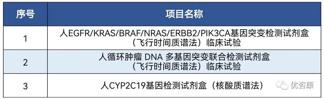 基于质谱的核酸测序试剂是一种新型的核酸测序技术,它采用质谱技术对DNA、RNA等核酸分子进行测量,可以高效地实现高通量测序。核酸质谱作为一种新兴的基因检测方法,具有多位点、高通量、低成本、周期快的差异化优势,将是继NGS 之后,继续推动中国精准医疗快速发展的重要力量,加速实现基于多基因位点检测的临床分子诊断及精准医疗。 2023年1月5日,国家药品监督管理局(NMPA)正式批准注册由达安基因控股子公司达瑞生物研发生产的“二十项遗传性耳聋基因突变检测试剂盒(飞行时间质谱法)”,该试剂盒是国内首个基于飞行时间质谱技术进行耳聋基因检测的获证试剂盒,也是国内首个获得国家药监局批准的核酸质谱试剂盒。2023年3月8日,Agena公司与先声诊断共同推进的“人CYP2C19基因分型检测试剂盒(飞行时间质谱法)”正式获得国家药品监督管理局(NMPA)第三类医疗器械注册证,这也是国内首个基于飞行时间质谱技术进行药物基因组检测的获证试剂盒。该产品获批用于体外定性检测正在服用或将要服用氯吡格雷进行抗血小板治疗的冠心病和缺血性卒中患者外周血样本中CYP2C19基因的多态性,助力心脑血管疾病临床精准用药。是继今年1月达瑞生物的耳聋基因检测试剂盒获批后,基于MassARRAY®核酸质谱平台获批的国内第二张第三类医疗器械注册证。 基于质谱技术的新型检测方法和诊断试剂盒将加速推进临床应用的快速发展,在2022年共进行了3项临床试验,分别是:人EGFR/KRAS/BRAF/NRAS/ERBB2/PIK3CA基因突变检测试剂盒(飞行时间质谱法)临床试验、人循环肿瘤 DNA 多基因突变联合检测试剂盒(飞行时间质谱法)临床试验和人CYP2C19基因检测试剂盒(核酸质谱法)。可以将以上3项临床试验分为2类,前2项为治疗药物靶点检测相关试剂,第3项为人类基因检测相关试剂。具体数据如下: