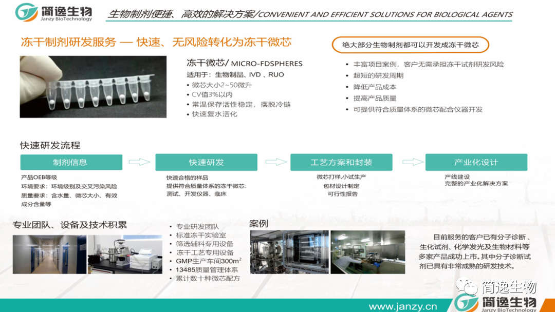 冻干试剂整个生产过程风险非常多,并且环环相扣 而且它属于试剂生产体系的关键工序,因此,风险控制、质量、法规都有很多限制。因此冻干试剂在研发和生产上有很多挑战,我们在每个环节都和大家做过详细的系列分享:《【分享】分子POCT产品突破:探索看不见的水下冰山》,简逸生物除了定期和大家分享我们的经验,同时提供全方位的冻干试剂解决方案。