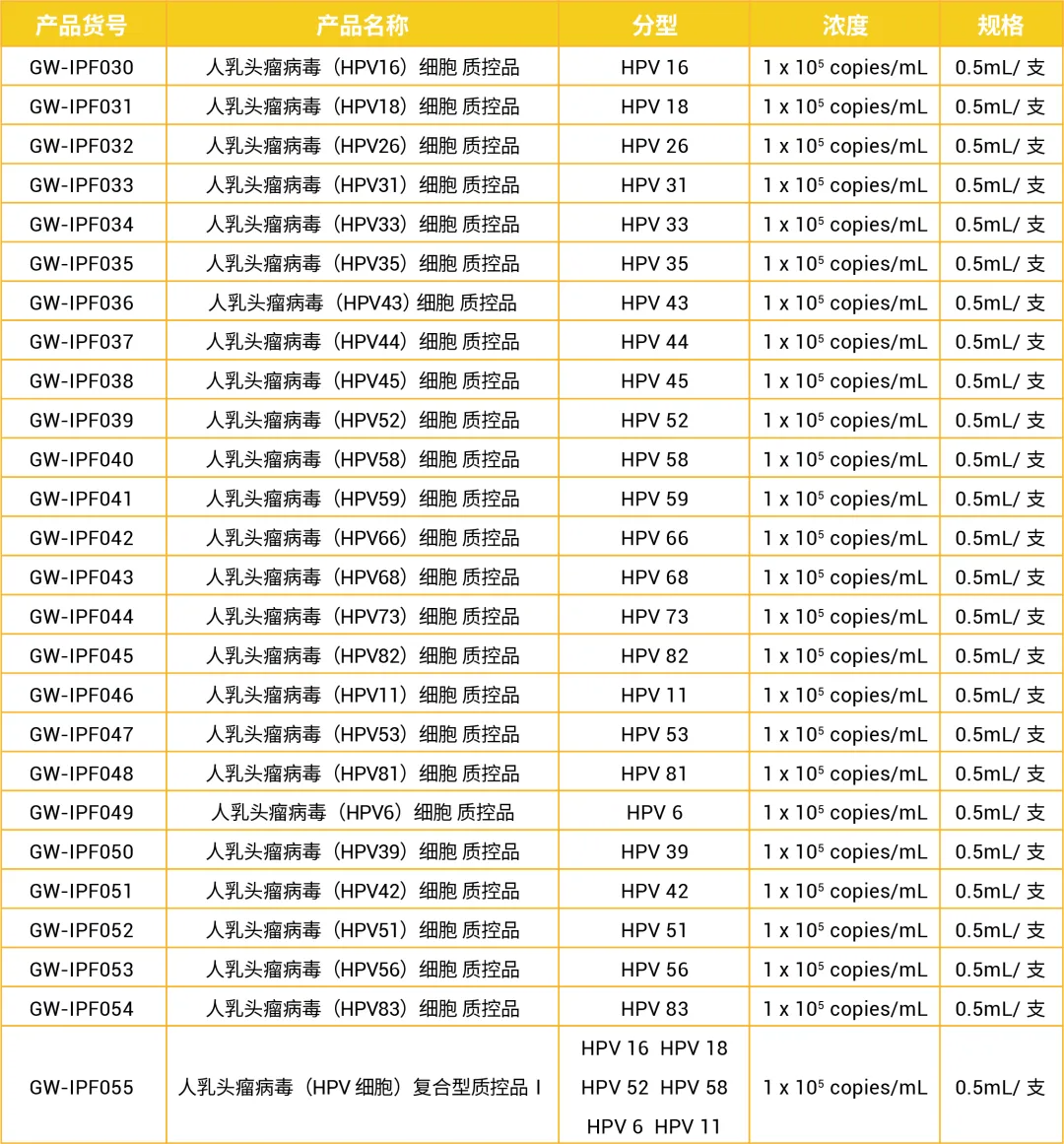 样本类型更接近临床真实样本情况,可制备基因组DNA、细胞沉淀、细胞悬液等各类模拟临床样品的新型质控品,适用于多种检测平台。HPV分型全长基因组稳定整合的人源细胞系质控品,能更准确的测定病毒载量,质控HPV检测全流程。