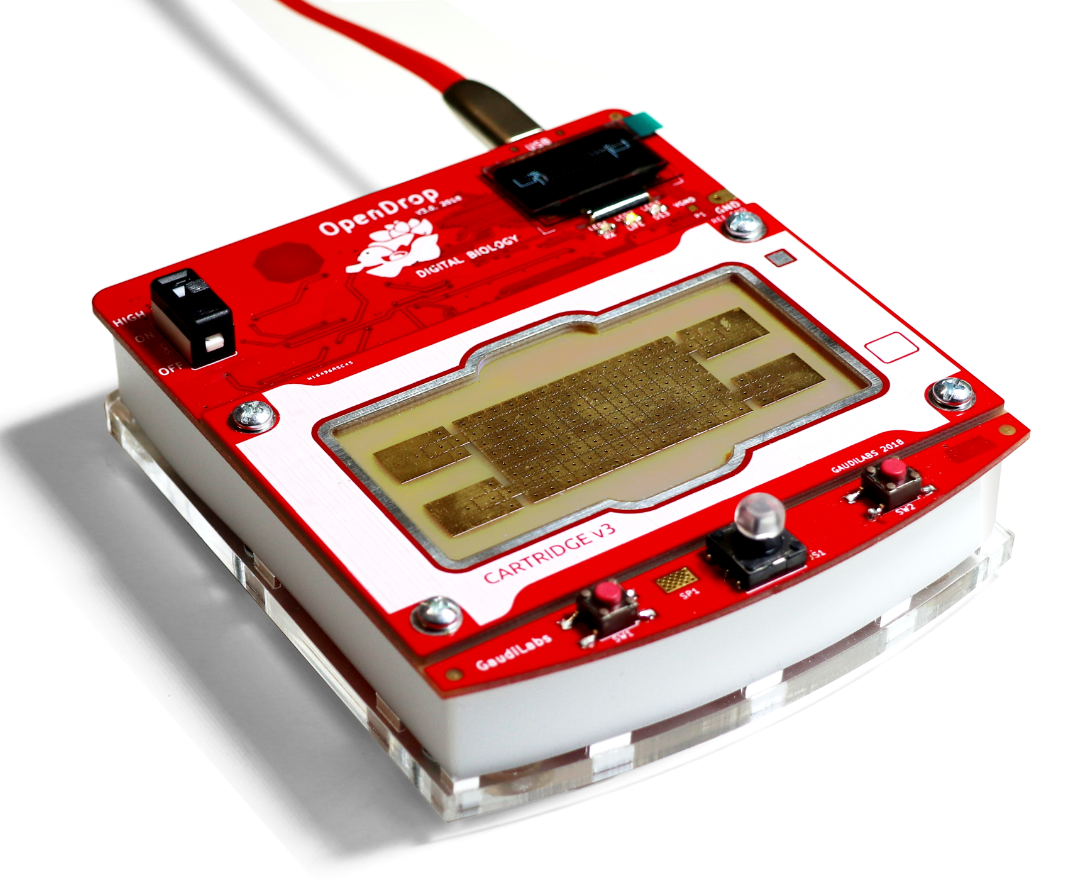在经过近二十年的发展,数字微流控技术逐渐成熟,理论也逐渐完善,近几年国内外涌现出诸多商品化产品,将数字微流控技术推向市场。尽管数字微流控技术逐渐成熟,但该技术仍存在加工成本高、技术要求高、仪器开发难度大等诸多问题待解决,这也大大限制了该技术的普及。目前仍然有许多科研工作者致力于解决这些问题,带领数字微流控技术走出实验室,走进人们的日常生活,实现在即时检测、食品安全、环境监测、生化分析等领域的广泛应用。ePlex是美国GenMark公司研发的一种数字微流控平台,它具备高度的自动化特性,是目前市场上唯一一个从采样到应答的工作流系统。ePlex秉承着为患者设计,为实验室优化的理念,经过精心设计,实现了高度的自动化和集成化。 ePlex根据实验室和医疗系统的多样化和不断变化的需求,结合客户反馈、自由定制和直观的用户界面,旨在开发一种更为高效和人性化的软件。为满足大多数机构的需求,ePlex系统提供了模块化和可伸缩的设计,通过一个简化的路径增加容量。 目前ePlex拥有5种不同的仪器配置,测试通道最多可达到24个,其中ePlex NP每次可同时测试12个患者样本,而ePlex4的配置超过了世界上任何一个从采样到应答平台。到目前为止,ePlex一共更新过4次,每个版本都做出了重大的改进并引入了更多的增强功能,旨在提高每一个环节的效率。ePlex4提供了许多新功能,有助于提高以患者为中心的医疗服务效率,其具备24个通道,每天可检测288个患者样本,可自动进行质量监控,检测速度较ePlex1提高了4倍。GenMark公司主要有呼吸道病毒检测芯片、HCVg直接检测、囊性纤维化基因分型、血栓形成倾向风险测试、华法林阻凝剂敏感性测试等。其中,GenMark eSensor技术是基于竞争DNA杂交和电化学检测原理。其对目标生物标志物具有很高的特异性,并不基于荧光或光学检测。因此,诊断测试不太容易出现样本污染风险,也不需要耗时的清洗和准备步骤。→公司官网:https://www.genmarkdx.com/OpenDrop是由一个开放研究团队Gaudi团队研发的数字微流控平台,首次在2017年微流控年会上展示。该平台利用介电润湿的原理控制微小液滴的运动,在芯片上实现小体积反应,可应用于芯片实验室中的数字生物自动化过程。同样作为一种开放性的平台,OpenDrop支持操作硬件所需的所有设计文件和软件都在开放许可下共享。为了降低其他实验室对数字微流控的研究门槛和成本,该团队秉持着DIY模式和低成本的理念,尽可能使用市场上标准化组件、材料和生产过程,将设备运行的成本最小化,以避免个别客户无法使用部件或需要支付昂贵的安装费用。Gaudi团队最早是从印刷电路板上的电润湿实验开始研究数字微流控平台,通过Arduino UNO控制晶体管对电极供电。经过短短两三年的时间,Gaudi团队已经在数字微流控仪器构建上取得了重大进展。到目前为止,OpenDrop平台已经更新到第四代。第一代是以印刷电路板作为电极层,通过可伸缩的电子控制和简单的涂布方法,实现了DIY模式和低成本理念。第二代采用两倍电压驱动芯片HV507,并扩大了电极阵列,从原来的8×8电极阵列扩大到16×8电极阵列,每个电极2.75mm。此外还增加了液体进样口、LED显示屏、电压控制读取模块以及wifi模式。第三代是OpenDrop V3,相比于前两代,第三代OpenDrop做出了重大的改进,具有许多新的特性。首先在电极方面,OpenDrop V3采用镀金的电极阵列,将14x8电极阵列和4个储液槽集成到印刷电路板上,液滴可以停留在涂覆了疏水材料的薄膜上;在液滴驱动方面,该设备通过USB-C到USB-A电缆供电,运用软件设置驱动电压,可高达300V,支持交流和直流电压两种模式;OpenDrop V3运用32位AVR SAMD21G18微处理器,拥有充足的内存和电源;增加了多音音频放大器和扬声器。OpenDrop V4是OpenDrop平台的最新版本,在第三代的基础上,芯片卡盒做了较大的改进。主机上设置有卡槽,将组装好的芯片卡盒嵌入进开放式或“无顶式”电润湿仪器中,即可开展设备演示,更适用于研讨会,教学和技术演示。利用介电润湿效应来移动液滴的关键是拥有一个超疏水性良好的滑动表面,市场上有不同的电润湿涂层材料,如氟化聚合物、特氟龙等,这些都是非晶型氟聚物,可通过自旋涂层或浸渍涂层沉积。Gaudi团队最早只是使用了聚乙烯(polyethylene, PE)和厨房锡纸材料作为疏水材料,再在上面涂布Rain-X—一种用于挡风玻璃的商用防雨剂。后来他们发现在简单的无上极板体系中利用保鲜膜和硅油组合作为疏水层是一个更好的选择。之后为了适应有上极板的体系,他们开发了更先进的解决方案,即使用聚四氟乙烯箔和氟化聚合物作为疏水材料。2010年成立的上海衡芯生物科技有限公司(简称“衡芯生物”),是我国家专注于开发数字微流控芯片、仪器及其应用的高新生物科技公司,在数字化微流控技术方面已经获得多项国际专利。自成立起至2013年,该公司依次完成了以硅为基底的微流控芯片和玻璃芯片的研发,并于2014年在中国、美国、欧盟、韩国等多个国家或地区获得双电极结构芯片的授权。2015年,衡芯生物完成了与罗氏诊断的合作,实现了衡芯产品在手足口病、肺结核、乙肝等传染病检测中的应用。该公司针对不同实验的需求对芯片进行不同的设计,为方便控制温度及光学测量,他们采用玻璃基底和透明电极;为实现微量样品的检测,他们设计的上板有玻璃和塑料两种形式,并且