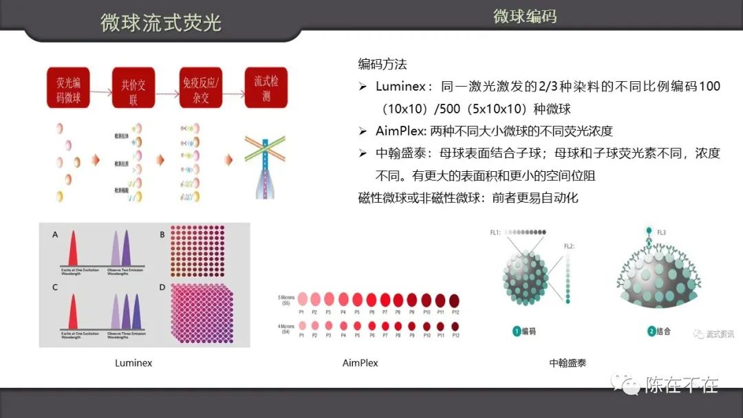 微球流式荧光,笔者建议这一技术统称如此。三个词语可以跟其它技术明显区分:“微球”使之有别于传统流式检测细胞;“流式”是要让微球流动起来;“荧光”说明跟发光不是一个理。微球编码是这一技术比较好玩的地方,多参数同时分析也是这一技术最大的特点。