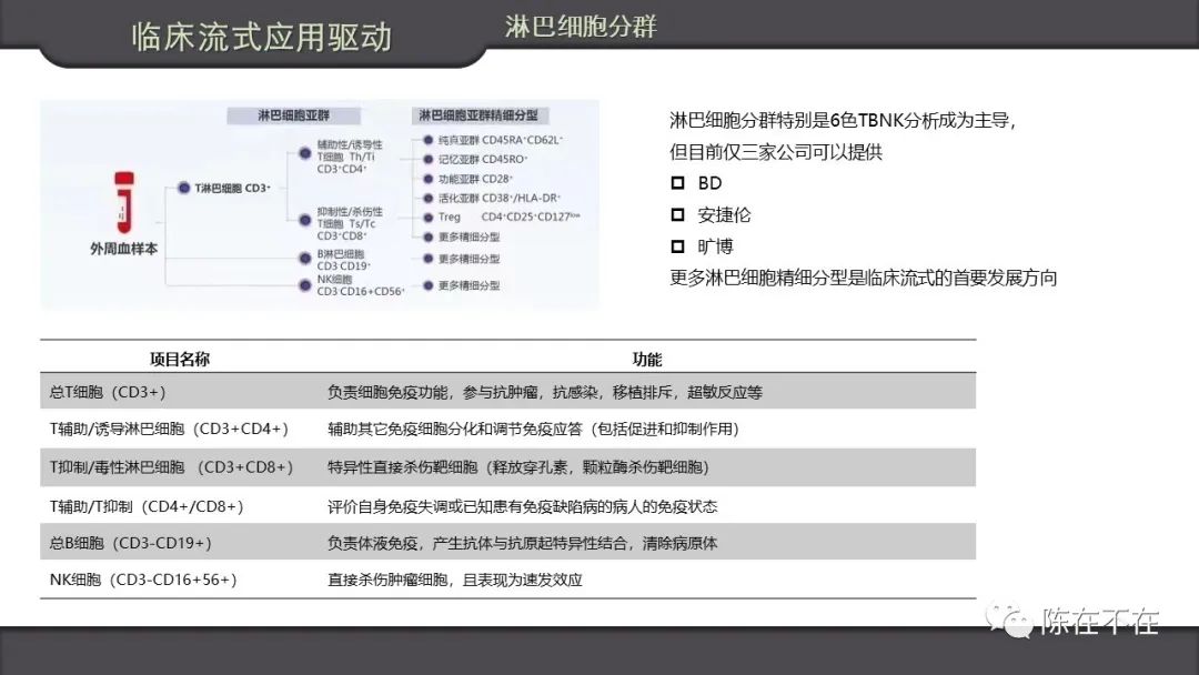 淋巴细胞分群目前六色才三家。精细分群尚在发展之中。