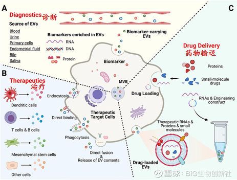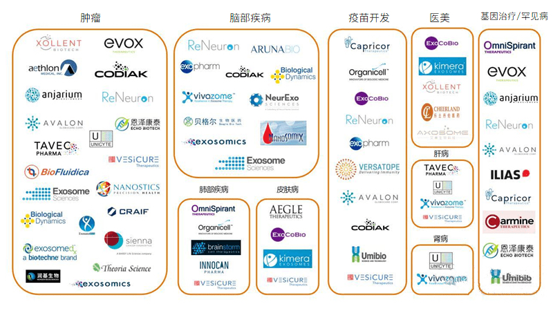 疾病诊断标志物 考虑到外泌体含有独特的货物,在几乎所有的生物液体中都有很强的存在感,具有很高的生物稳定性,并可作为细胞间的信使,探索其在液体活检中作为生物标志物的效用是不可避免的。有研究报道,通过对患者血液中的外泌体进行分析,肺癌和胰腺癌的早期诊断率分别已经能够达到75%和90%。 这个方向的代表企业是2008年就成立的美国公司Exosome Diagnostics(简称“ExosomeDX”),作为最早研究外泌体诊断产品的公司之一,2016年推出首款产品ExoDX Lung(ALK)辅助医生判断患者是否可以进行ALK抑制剂治疗。而第二款产品ExoDx Prostate IntelliScore(EPI)通过检测尿液中外泌体RNA的三个基因指标,结合专有算法,得出一个与前列腺癌危险程度相关的评分。 未来,外泌体的诊断潜力不仅限于癌症,其他治疗领域也在探索之中,如疼痛、自身免疫性疾病和妊娠高血压疾病。 药物载体 外泌体与细胞膜融合可将所携带的物质和信号传递到受体细胞并改变其生物学功能,因此,外泌体是纳米药物递送或基因治疗的潜在载体。其次,外泌体作为功能性小RNA和蛋白质的天然载体,它可以利用这些囊泡治疗性递送各种核糖核酸分子、肽和合成药物。 这个方向的代表企业是美国的Codiak。Codiak一直致力于利用其专有的外泌体技术平台engExTM,为包括肿瘤、免疫疾病以及罕见病等诸多领域的疾病提供有效的治疗方法。 治疗药物 外泌体由多种细胞产生,通过多种方式与目标细胞作用,产生医疗效果。目前,有关外泌体的临床研究大部分是医院或者研究机构进行的探索性研究,只有两家公司的外泌体治疗产品已经进入到临床I期,澳大利亚的Exopharm和美国的United Therapeutics |