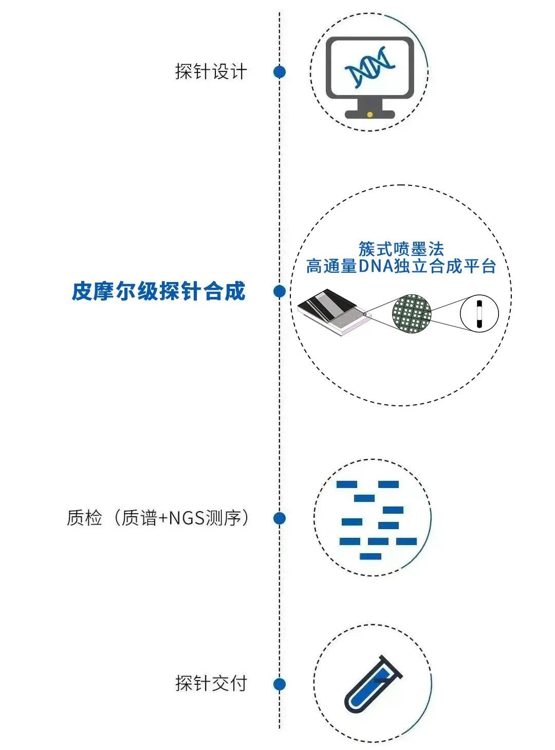 来源:小桔灯网 基因测序是分子诊断领域的一项重要技术,可用于肿瘤,感染性疾病,遗传性疾病等的预防,诊断及治疗。二代测序的快速发展极大地推动了测序技术在临床分子诊断方面的应用。 靶向测序技术可以针对感兴趣的区域进行富集,使单个样本所需测序数据量显著降低且加快分析速度,从而降低测序成本。因此,靶向测序技术已被广泛应用于分子诊断领域。例如:在遗传突变检测、肿瘤筛查等领域,靶向测序可以对目标区域进行深度测序,相同测序成本下能达到更高的灵敏度。在病原检测领域,与宏基因组测序相比,靶向测序能够排除宿主信息干扰,不仅降低了测序成本,节约检测时间,同时也提高了检测灵敏度。 除分子诊断外,近年来靶向捕获测序技术也扩展到了农业育种领域,用于分子标记检测。与固相芯片相比,以靶向捕获测序技术为依托的液相芯片具有性价比高、定制灵活的优势,是靶向测序应用的一个非常有增长潜力的新兴应用方向。 液相杂交捕获是靶向捕获测序中广泛使用的一种捕获技术,其原理是根据目标区域设计探针,利用碱基互补配对原理对目标区域进行捕获富集。 其中,捕获探针是液相杂交捕获技术的核心原料。目前市场上提供的商业化探针类型包括DNA探针和RNA探针。两种探针各有优势,适合不同的应用场景。对于捕获区域较小或位点固定的商品化目录panel, DNA捕获探针是不错的选择。 作为核心原料,探针质量和成本是液相杂交捕获技术应用于分子诊断需要考虑的2个重要因素。 探针合成工艺对探针成本及质量非常重要。目前DNA探针合成都是基于768的柱式合成,传统柱式合成需要使用μl级原料单体合成探针,单次合成单条探针产量为nmol级,对于很多应用场景来说这个量远远大于需求量,导至原料浪费进而增加整体成本。 迪赢开发的簇式喷墨法高通量DNA独立合成技术,可保证单条序列独立合成及回收,同时可以将合成产量控制在pmol级,与传统柱式合成工艺相比节约原料进而降低整体成本,能够更好地满足下游应用需求。 技术创新带来的高性价比 · 合成平台技术创新(簇式喷墨法高通量DNA独立合成技术)保证质量同时将产量控制在皮摩尔级,正好适合下游应用 · 技术创新带来的成本下降,更能满足客户对性价比要求 · 创新的核酸化学带来更高的探针纯度 严格质控保证高品质 · 独立normalization保证均一性 · 单条独立回收保证质量 · 质谱QC和NGS测序QC双保险 专业团队为客户服务 · 快速的合成周期 · 作为原料供应商提供合成服务,严格对用户序列保密 · 提供高质量封闭液,杂交液,接头等配套试剂 探针质谱QC检测数据展示 探针捕获数据展示 图1.肿瘤相关基因panel 1杂交捕获数据 DNA panel大小为 579kb。建库试剂 QuarPrep EZ DNA Library Kit 1.0(NL1002),杂交捕获试剂QuarHyb DNA Reagent Kit Plus( NC1007) 图2.肿瘤相关基因panel 2杂交捕获数据 DNA panel大小为 865kb。建库试剂QuarPrep EZ DNA Library Kit 1.0(NL1002),捕获试剂QuarHyb DNA Reagent Kit Plus( NC1007) 图3.肿瘤相关基因panel 3杂交捕获数据 DNA panel 大小为 872kb。建库试剂QuarPrep EZ DNA Library Kit 1.0(NL1002),捕获试剂QuarHyb DNA Reagent Kit Plus( NC1007) 迪赢生物专注新一代核酸合成,致力于通过技术创新为用户提供更高性价比的产品和服务。独创簇式喷墨高通量DNA独立合成平台,提供最高性价比DNA探针原料合成服务,同时提供高质量封闭液,接头,杂交液等试剂,加速NGS分子诊断核心原料国产化。 点“在看”给我一朵小桔花 |