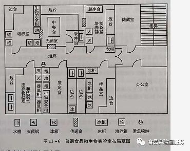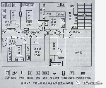 | 微生物实验室看似简单,其实其设计亦同食品车间一样有许多讲究。普通食品微生物实验室操作的微生物(卫生指标菌项目除外)大多属于危害程度二类的微生物,因此应该按照二级生物安全实验室的要求进行设计。通常,普通的微生物检测实验室位于楼房的一整层或者一层的盲端,以这种最常见的情况进行平面布局设计(见图11-6)。(1)办公区域与实验区域分开。办公区域为南向,为工作人员在其中进行文字工作和出入控制。这样设计使闲杂和外来人员仅在办公区域活动,控制实验人员在实验区域活动,减少其穿越办公区域的机会,从而有效控制外界对实验环境以及实验室对外界环境的污染。(2)实验室走廊和通道应不妨碍人员和物品通过,不应在走廊里摆放设备和杂物。对于双面布房单走道的设计,走道最小净宽不应小于1.6m。实验室工作区应配备紧急喷淋和洗眼装置,可将此装置安装于走廊。(3)实验室工作区域外应有存放备用物品的条件。在实验区域外面办公室的对面设一间北向的储藏室,方便存放物品及档案资料。(4)实验室入口应有防止啮齿类动物进入的设计。实验室入口处可设置更换衣物挂帽的衣架或衣柜。实验室主入口的门应可自动关闭,应有进入控制措施。实验室入口的门为双扇以方便大型设备的出入。实验室各房间的门向外开启方便紧急情况下的人员疏散。房间的 门根据需要安装门锁,门锁应便于内部快速打开。(5)各房间按洁净区、半污染区、污染区从外向里依次排列,按工作流程依次设为:培养基制备室、无菌室、培养室、鉴定室和废弃物处理洗刷室。(6)培养基制备室紧邻实验室入口而远离核心实验区,这种设计一方面可以减少其受实验室操作对象污染的风险,另一方面它靠近储藏室,方便实验器具、耗材、培养基的搬运。培养基制备室最好能有一台方便进行培养基倾注等无菌操作的超净台。(7)无菌室内主要从事样品的前处理和样品接种工作。无菌室设一间缓冲间,内有水盆,缓冲间的2扇门错开,避免正对。无菌室设中央台方便接种操作。在无菌室的多面设传递窗作为传送物品的物流通道,实现“人流物流分开”。(8)培养室和废弃物处理洗刷室是容易产生异味的房间,设在走廊尽头,可以使气味尽量少地扩散到其它房间,还可以在西墙上开额外的窗增大房间的通风。废弃物处理和洗刷室应设至少两个水盆,宜由热水供给。如果处理后的液体废弃物需要倒入下水,则可以在倾倒液体废弃物的水盆上方安装排气罩,加快液体废弃物的气味的排放。(9)培养室内仅进行微生物的培养和计数等不打开培养容器的工作,可疑培养物的转接、再培养及鉴定工作移至鉴定室内完成。鉴定室直接从事致病微生物的操作,必须安装II级生物安全柜。应按产品的设计要求安装和使用生物安全柜。如果生物安全柜的排风在室内循环,室内应具备通风换气的条件;如果使用需要管道排风的生物安全柜,应通过独立于建筑物其他公共通风系统的管道排出。鉴定室内需放置一至数台生化培养箱用于微生物的培养,还可以放置一台高压灭菌器用于培养废弃物的处理。如果场地条件允许,可以将培养室和鉴定室合并以方便工作。(10)无菌室和鉴定室必须安装紫外灯(无灯罩,灯罩会阻挡紫外线),一般每10m2至少安装一盏30 w以上的紫外灯,高度应距离桌面大约1.5 m,高度太高会影响紫外灯的杀菌效果。三级生物安全实验室为独立建筑物或在建筑物中自成隔离区。通常由防护区和辅助工作区组成,防护区中直接从事高风险操作的工作间为核心工作间。一个用于微生物检测的简单的三级生物安全实验室的平面设计见图11-7。(1)洁净区、半污染区和污染区分区明显,相邻两区之间有缓冲间,满足“三区两缓的要求。(2)设计了“回”字型的半污染区走廊,满足“无回路”要求。(3)实验人员通过缓冲间进入实验区,物品通过传递窗进入实验区,做到“人流物流分开”。(4)洁净区、半污染区和污染区有压差,形成压力梯度。核心工作区各房间设计成负压实验室(生物安全实验室).如果无菌室内操作的样品需要受到无菌保护且其潜在污染风险低,那么无菌室可以设计成正压实验室。三级生物安全微生物检测实验室的无菌室内的操作不应在敞开的工作台上进行,必须在生物安全柜内进行,工作台仅为摆放物品所用。(5)在产生废弃物的房间(培养室和鉴定室)与走廊之间的墙上设双扉高压灭菌锅。双扉高压灭菌锅是前后两面都可打开的高压灭菌锅。高风险的房间内的废弃物不允许直接带出房间,应该在双扉高压灭菌锅灭菌后,从房间外的灭菌锅舱门打开取出。(6)应设计紧急撤离路线,在半污染区和洁净区之间设安全门(紧急出口),紧急出口应有明显的标识。发生紧急情况时可以通过安全门迅速撤离。(7)需要时(如:正当操作危险材料时),房间的入口处应有警示和进入限制。 转载自网络,仅供参考,侵权必删