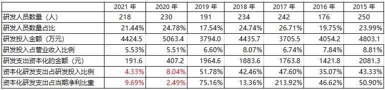 资本化研发支出占研发投入比例过去常年在40~50%,2019年甚至高达51.78%。研发支出高占比,虽然分摊了费用,短期内看不出利润的乏力,但长期造成的盲点容易让管理淡化攻克重点。不过这点正在改善,疫情后2020年、2021年这个笔记急转直下为8.04%、4.33%,有利于直面突出问题,聚焦发力。