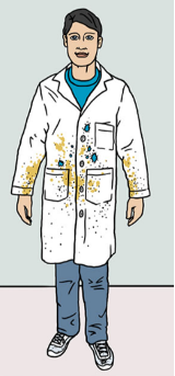 白大褂不仅能定位科研人的身份,还能从细节定位研究方向。比如以下这4位,从污渍的颜色、分布区域大小和白大褂风格,就能推测出他们研究的内容大不相同。