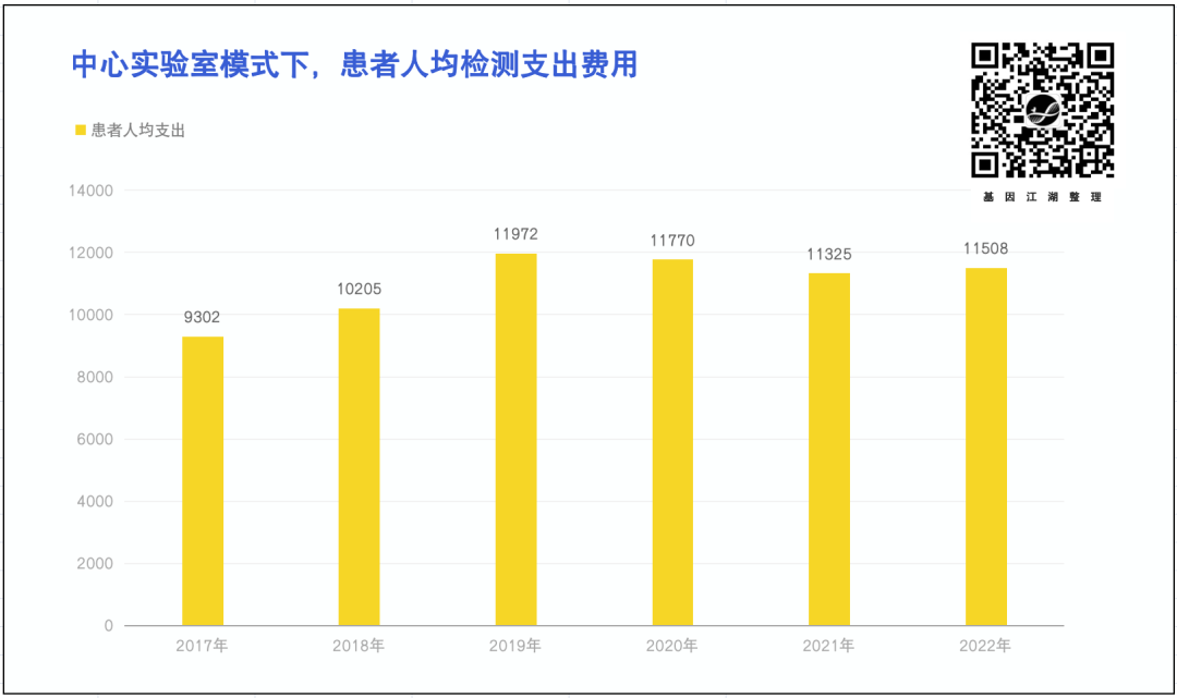 5月12日,金域医学以“搅局者”的姿态出现,一把将肿瘤基因检测的终端价格击穿至3000元,引发行业剧烈震动(另单篇再议)。 我们以燃石医学中心实验室模式下的患者人均支出(中心实验室模式营收/中心实验室检测人数)为例,人均支出超过万元,且在2017年-2022年6年时间内,患者支出并未降低。这也是行业普遍收费现状。 技术的革新、检测成本的下降,并未让患者享受到真正的实惠。这断然不是创业者们的初衷,也不是我们所有从业者愿意看到的现象。