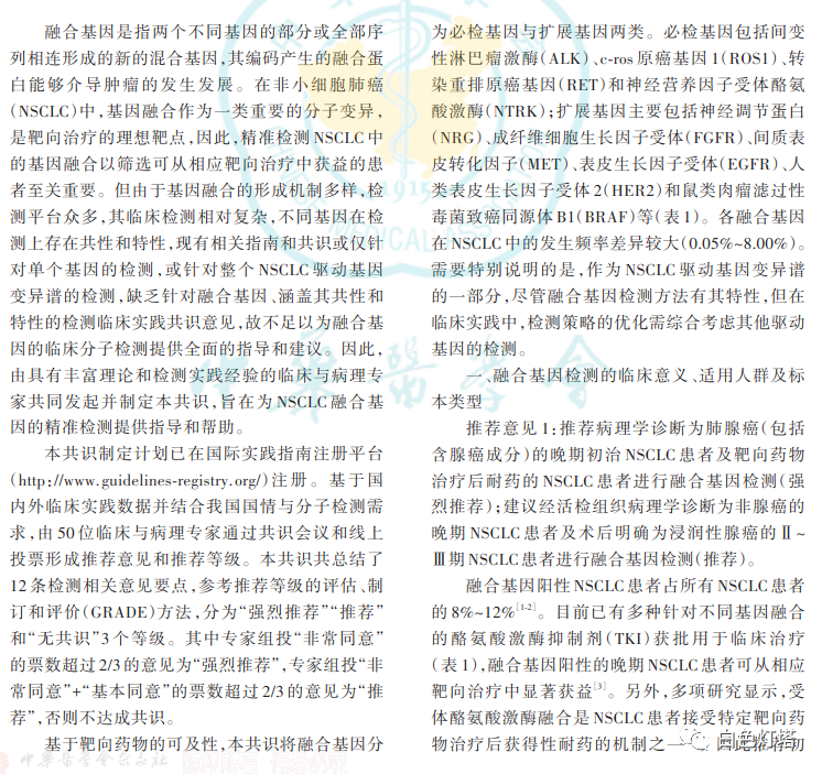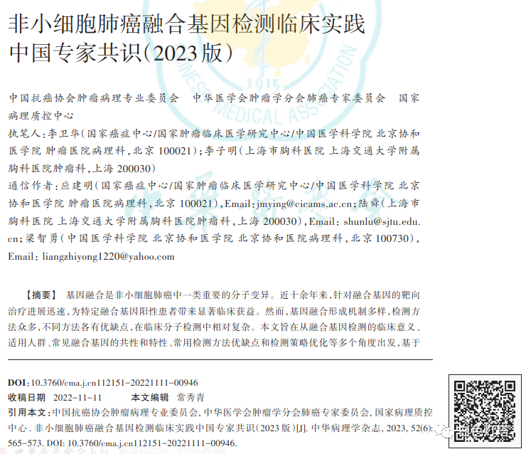 融合基因作为肺癌中这些年热点的领域之一,其检测也与单纯点突变来说也要更加复杂一些,因此中国抗癌协会肿瘤病理专业委员会携手中华医学会肿瘤学分会肺癌专家委员会共同出版了《NSCLC融合基因检测临床实践中国专家共识(2023版)》,以期给NSCLC融合基因检测带来更多的协助~