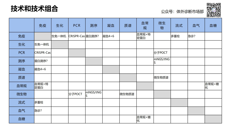 3仪器兼容不同技术,开放兼容or跨界打劫 在展会上也看到了深圳慧流体公司,生化免疫血球三合一平台,尝试三种特性组合,很是新颖。也列举了一些可能或已经做到了一起的整合设备,欢迎补充。 未来一段时间,内外压力下创新可能会在排列组合中尝试很久。但个人仍有一个观点,排列组合如果是把东西拼一起那拼的是速度和资本,很可能噱头大过实用性。深耕细分领域,提升技术壁垒才是创新求发展的方向。