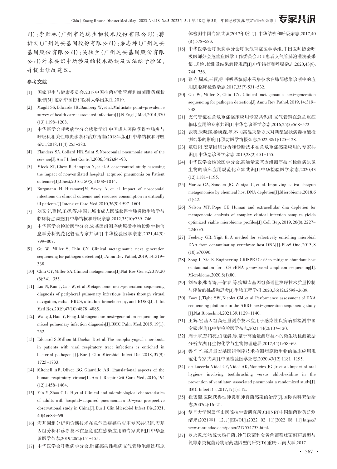 医院获得性肺炎(hospital-acquired pneumonia,HAP)是指至少在入院48h后发生的肺炎,患者住院期间未接受有创机械通气、未处于病原感染的潜伏期,而于入院48h后新发,是常见的医院获得性感染疾病。 快速诊断病原体及其耐药情况,及时恰当使用抗感染药物对于HAP患者的诊疗和康复至关重要。 而宏基因组二代测序技术(metagenomics next generation sequencing, mNGS) 通过直接提取临床样本中的核酸进行文库构建和高通量测序,利用生物信息学算法分析样本中包含的病原微生物序列的种类及耐药基因和毒力基因,能够快速并且准确地检测各种临床样本中的病原微生物,显著提高病原检测的敏感性,大大缩短检测时间。 近期,《宏基因组学测序技术在成人医院获得性肺炎中的临床应用专家共识》发布,旨在促进和规范mNGS在医院HAP诊疗中的合理应用,以下为共识意见汇总。 检测流程 建议HAP患者开展mNGS检测时,最好采集支气管肺泡灌洗液或者气道抽吸物。 建议HAP患者如存在免疫功能低下、基础疾病严重或病情危重时,且在经济允许的情况下,进行微生物培养送检的同时开展mNGS检测。 在流感病毒、冠状病毒等RNA病毒流行期间,建议HAP患者开展宏基因组检测时,首选DNA和RNA检测项目。 建议HAP患者开展mNGS检测时,要求相关实验室测序数据量至少保证10M以上。 建议HAP患者开展mNGS检测时,临床检测报告中要体现内参和对照品的检测合格性。 建议HAP患者开展mNGS检测时,检测结果要结合基础疾病史、临床其他检测结果综合考虑。 mNGS报告解读 建议HAP患者开展mNGS检测时,如检测到多种细菌时,需要考虑混合感染,同时结合临床表现综合考虑主要感染源。 建议HAP患者开展mNGS检测时,如检测到毒力基因,需要重点考虑高毒力肺炎克雷伯菌,如检测到耐药基因,避免使用耐药基因对应的抗生素,但可以通过药敏试验对耐药基因进行验证。 建议HAP患者开展mNGS检测时,如患者为严重的粒细胞减少或严重的细胞免疫缺陷继发HAP时,除重点关注一般细菌外,真菌、病毒和胞内菌等机会性感染也需重点关注。 建议HAP患者开展mNGS检测时,如检测到嗜肺军团菌,需要考虑是否存在院内供水污染等情况。 建议HAP患者开展mNGS检测时,如检测到支原体和衣原体,需要考虑是否存在院内污染。 建议HAP患者开展mNGS检测时,如检测到常见的口腔定植菌,需要考虑是否存在机械通气和误吸等情况。 建议HAP患者开展mNGS检测时,如患者有持续性严重的免疫缺陷症如艾滋病、中性粒细胞减少症等,检测到真菌且针对用药无效时,需要结合流行病学情况等考虑真菌耐药的可能。 建议HAP患者开展mNGS检测时,如检测到常见的呼吸道相关病毒时,结合该病毒流行病学情况,同时关注患者是否存在流行病学接触史,参考血清IgM抗体和IgG抗体的情况综合考虑。 建议HAP患者开展mNGS时,如果检测结果为阴性,可以针对临床可疑的微生物进行PCR验证,同时阴性结果对于排除感染具有较好的阴性预测意义,但需要结合其他检测结果综合考虑。 参考文献: 罗亮,陈仲清,陈尔真等.宏基因组学测序技术在成人医院获得性肺炎中的临床应用专家共识[J].中国急救复苏与灾害医学杂志,2023,18(05):561-568. 文章排版:晶泰医学 信息来源:IVD从业者网 |
