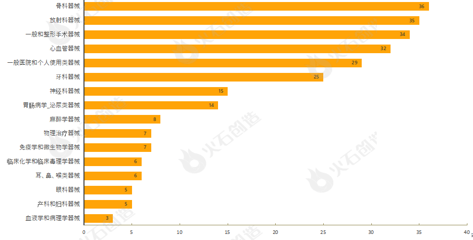 来源:国家药品监督管理总局 南京圣和药业自主研发并拥有自主知识产权的奥磷布韦片是国内首个拥有自主知识产权的泛基因型非结构蛋白5B(NS5B)抑制剂,适用于与盐酸达拉他韦联用,治疗初治或干扰素经治的基因1、2、3、6型成人慢性丙型肝炎病毒(HCV)感染,该药品的上市为非小细胞肺癌患者提供了新的治疗选择;浙江博锐生物申报的泽贝妥单抗注射液适用于CD20(B淋巴细胞表面携带的一种分子标记物)阳性弥漫大B细胞淋巴瘤,该药是国内首个获批上市的国产CD20抗体1类新药,也是博锐生物首款获批上市的1类创新生物药,该品种的上市为淋巴瘤患者提供了更多的治疗选择;贝达药业申报的甲磺酸贝福替尼胶囊适用于既往经表皮生长因子受体(EGFR)酪氨酸激酶抑制剂治疗出现疾病进展,并且伴随EGFR T790M突变阳性的局部晚期或转移性非小细胞肺癌患者的治疗,是针对T790M突变的第三代EGFR-TKI,具有巨大的临床需求,2018年12月,贝达药业与益方生物达成合作,获得贝福替尼在中国大陆、香港和台湾地区的权益,并可独家在合作区域内进行该产品的开发及商业化,该产品是贝达药业第5款获批上市的创新药。(四)仿制药一致性评价情况 截至2023年6月8日CDE官网披露,CDE共承办药品一致性评价受理号4892个,2023年5月共新增承办62个受理号。截至2023年6月8日,共5989个品规上市药品通过一致性评价(包含视同通过2699个品规),本月共84个品规的药品通过一致性评价(包含视同通过14个品规),按剂型去重后,共55个药品品种。目前一致性评价品种通过的注射剂共2383个品规(313个品种),本月过评药品中共计50个品规(28个品种)的注射剂。2022年5月至2023年5月通过一致性评价数量见图3。图3 2022年5月—2023年5月仿制药一致性评价批准数量变化情况来源:国家药品监督管理总局 (一)美国FDA批准情况 截至2023年6月8日,5月FDA共批准267个510(k)途径的产品,其中一类器械15个,二类器械246个,未分类6个。通过对510(k)上市前通知的器械根据美国医学专业用途进行分类,结果发现,5月产品获批类型最多的为骨科器械、放射科器械、一般和整形手术器械、心血管器械与一般医院和个人使用类器械,见图4。图4 2023年5月通过FDA 510(k)途径获批上市产品类型分布情况来源:美国食品药品监督管理局 2023年5月有3个通过上市前批准(PMA)途径首次上市的产品。