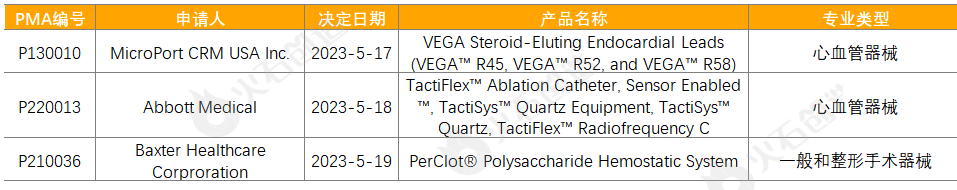 来源:国家医疗器械审评中心 截至2023年6月8日,2023年5月国家局公示了3个三类创新器械获批上市,见表6。