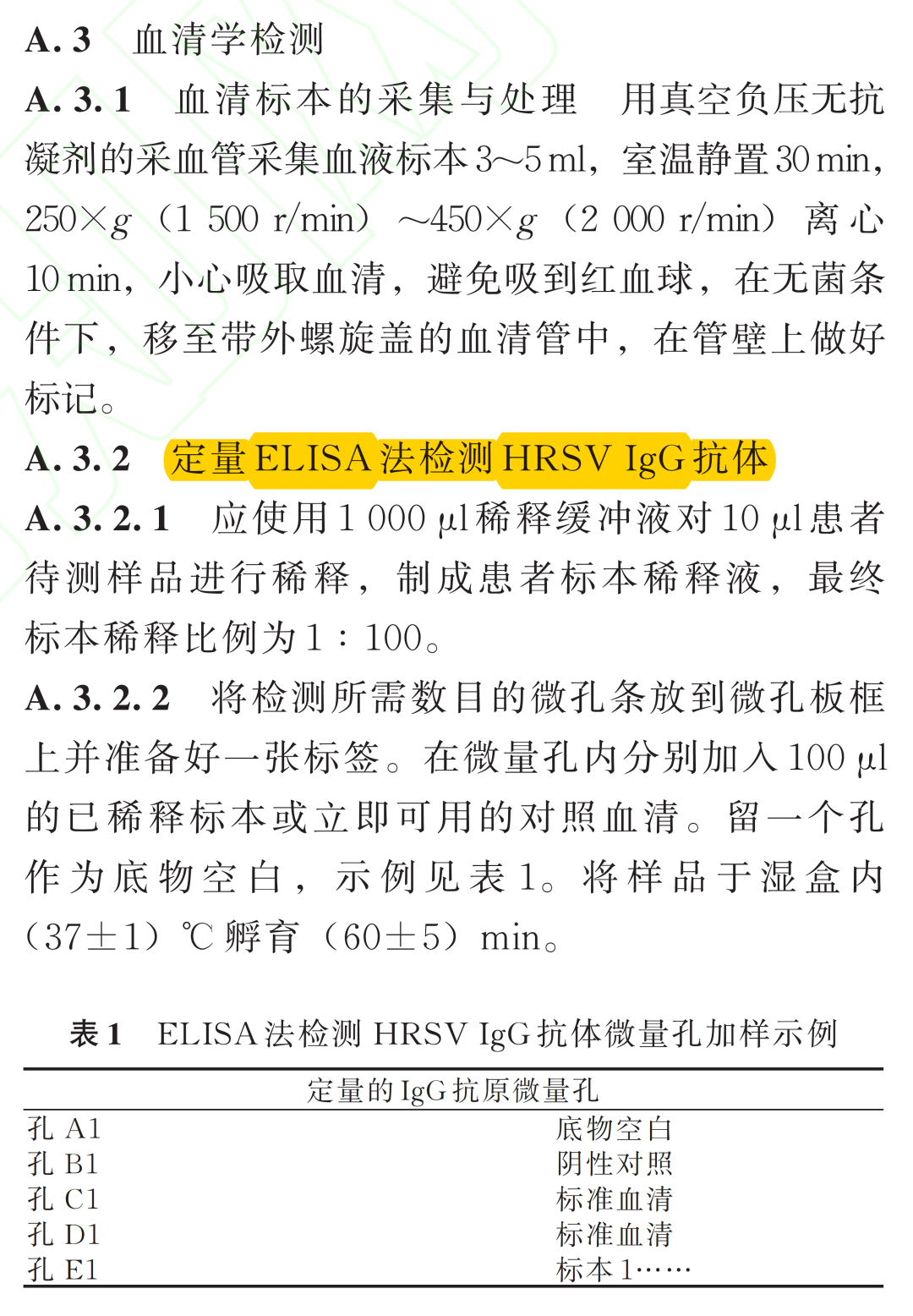 呼吸道合胞病毒(respiratory syncytial virus,RSV)是世界范围内婴幼儿下呼吸道感染最重要的病原体之一,近年来研究发现可引起成人、中老年人及免疫抑制患者下呼吸道感染,2015年全球范围内由RSV引起的呼吸道感染人数约3.3亿,其中RSV占全球儿童急性下呼吸道感染的22%,中国的RSV感染率约为31/1000,占儿童下呼吸道感染的18.7%。不仅如此,RSV感染在成年人中的病死率高达4%,目前尚未有疫苗可控,因此早检测、早预防、早治疗至关重要。在《人呼吸道合胞病毒感染诊断(CT/CPMA 028—2023)》的诊断依据中,其临床诊断的覆盖人群包括婴幼儿、学龄前期儿童、学龄期和青春期儿童、成人及老年人及有基础疾病人群。在实验室检测中,检测方法包括抗原检测、核酸检测、血清学检测、病毒分离、中和试验和测序等。在血清学检测的规定中,ELISA 法检测HRSV IgG 抗体主要用于定性和/或定量检测人血清或血浆中抗HRSV 的IgG 抗体,用于HRSV 感染诊断或人群抗体水平调查。特异性IgG 抗体在急性期阴性而恢复期转为阳性,或恢复期特异性IgG 抗体滴度较急性期IgG 抗体滴度升高4 倍及以上, 提示疾病过程有HRSV感染。其血清学检测推荐为定量ELISA法检测HRSV IgG 抗体。