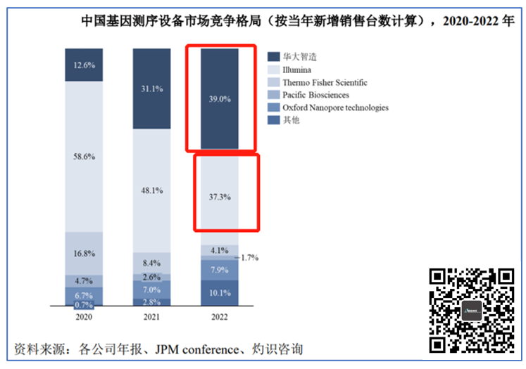 … 这还仅仅是2023年上半年,我们不禁要问全球测序仪老大怎么了? 其实从体量上来讲,Illumina仍然是一个庞然大物,只是在美国国内新兴势力逐渐兴起,在中国面临华大智造MGI的正面硬刚,行业的格局已经悄然生变。 根据灼识咨询的梳理,中国国内的新增测序仪已经从Illumina占据绝对地位转变成华大智造、Illumina双雄竞争的格局。 不过,未来国产品牌,包括华大智造MGI在内,还有需要逾越的高山在等着。 技术之外的高山 生命科学工具行业,有一个绕不开的词就是:高端进口。 请注意,这是一个词,并不是高端和进口。 我国发展进程这个客观因素,导至在早期大量科研设备、仪器、试剂均需要进口,国产货几乎没有。 偶尔有一两个替代品,受制于当时的国内产业链供应链水平,也确实难以上台面。 甚至,科研服务圈流传,谁要是用国产替代,那是要被鄙视的。 这种根深蒂固的观念,在2005年出现了一丝转机。 彼时现康为世纪的创始人王春香博士的天根生化被国际知名科研工具提供商Qiagen收购,虽然彼时的代价仅仅约为400-600万美元。 但是,这里面的象征意义远大于此。 身处生命科学领域的人们忽然发现,自己家的东西似乎也不错,再拿进口试剂说事好像不那么礼貌了。 相对于试剂行业,高端仪器之争显得更为艰难。 在华大智造推出自己的测序仪之前,这个代表着高端科研仪器的领域鲜有国产品身影,即便有,也不能打。 当时的画风,基本都是华因康这种应用面较窄的相对粗糙的产品(历史发展必然,非diss),想与Illumina硬刚无异于痴人说梦。更为艰难的是,在初期华大智造不仅面临着进口品牌的正面攻击,还面临着贴牌产品的侧翼围剿。 事实上,当时的国内市场,充斥着Illumina和Life的贴牌测序仪,这种开局,不能说艰难,只能说很艰难。 不知道他们做过多少跟进口品牌的实验,也不知道他们面对国产化就是不行的这种论调有多么不甘… 如今,我们能看到的是以华大智造为引领的国产基因测序仪技术上早已成功与国外品牌并跑,甚至有些指标超越了国外品牌。 不说别的,就连Illumina最先进的NovaSeq X Plus也是刚一发布,就被华大智造的DNBSEQ-T20ⅹ2给压了下去,无论是单芯片产量还是单机产量,都被远远甩在身后。 此时,即便是在测序仪老大的大本营进行的DNBSEQ-T20ⅹ2产品发布,也得到了大量全球客户的认可。 时至今日,据不完全统计,基于华大智造平台的论文数量已经超过4400多篇,其测序仪也获得了包括NMPA/CE等权威机构的认证,广泛应用于科研、临床。 那么,这座藏在人们心中的“偏见“高山,是不是已经可以说被新一代的国产智造逾越了呢? 只能说,越过了,但没完全越过。 残存的枷锁 华大智造在2023年6月20日,拿到了EPO欧洲专利局的裁决,认定Illumina专利 30022289无效,进而扫清障碍,使得华大智造可以在欧洲市场长驱直入。 再往前推,2022年7月15日,华大智造宣布,与因美纳(Illumina)就美国境内的所有未决诉讼达成和解,根据协议条款,因美纳将向华大智造子公司CG支付3.25亿美元(约22亿元人民币)的净赔偿费。 这两个事件如一记重锤,打碎了中国测序仪产品没有核心专利的刻板印象。 华大智造凭借成熟产品和过硬核心专利,再加上能给客户带来更多价值,终获得了国际上越来越多客户的青睐。 不过,国内的情况似乎更复杂一点。 2023年6月,国家财政部发布公告继续将基因测序仪、流式细胞仪等产品排除出加征关税清单。 该清单产品,是针对美国2018年起加征我国产品关税做出对等反制后,对仍然有进口需求的产品进行排除。 有一点大家可能并不了解,进口基因测序仪一直是享受0关税的。在我国开始做出对等反制后,国家财政部在2020年2月就公布将基因测序仪排除出加征关税清单。 一般这些产品是国内难以替代的或无法生产的,不过别的不说,这都2023年了,继续把测序仪放到上面是否有其他考量,我们不得而知。 在这种情况下,国内测序仪厂商已经毫无保护的面对国外强势品牌的冲击十几年,继续下去也许带来的更多的是利润和市场的拱手让人。 仅仅在2020-2022年这三年时间,Illumina在大中华区的营收就超10亿美元。 反观最近一直频频冲上热搜的国产汽车行业,则比测序仪幸运的多,进口汽车仅关税一项就是25%。 加上不断推动的新能源补贴,国产新能源汽车的市场占比不断提高,已经打的国外品牌满地找牙了。 人们甚至戏称,老牌国外品牌的新能源车是“杂牌“电动车,其影响力可见一斑。 我们可怜的高端仪器方面,实在是一言难尽,国产基因测序仪这个“倒霉孩子“既要比别人考的好,还得允许别人先答题半小时,还得允许先答题的给同学传传答案。 其实政策是某些需求的反馈,也就是说,我们国内仍然有人没有逾越那座偏见的高山,或者说还没有意识到,国产测序仪早已与“进口高端“肩并肩了。 时至今日,轻舟已过万重山,是不是残存的枷锁也该去一去了? 知行合一,未来可期 事实上,生命科学研究领域我国高层高度重视,在2023年2月21日,中央政治局第三次集体学习中,习近平强调要切实加强基础研究,打好科技仪器设备、操作系统和基础软件国产化攻坚战,鼓励科研机构、高校同企业开展联合攻关,提升国产化替代水平和应用规模,争取早日实现用我国自主的研究平台、仪器设备来解决重大基础研究问题。 本身这个行业规模也是相当可观,根据民生证券的研究,给出2026年预计市场规模将超万亿。 