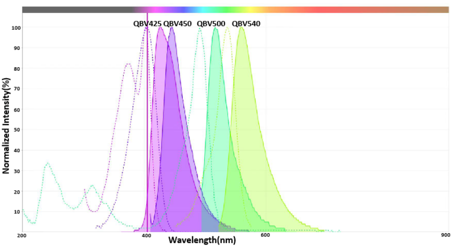 图3. QB染料家族之紫光系列:QBV425、QBV450、QBV500和QBV540