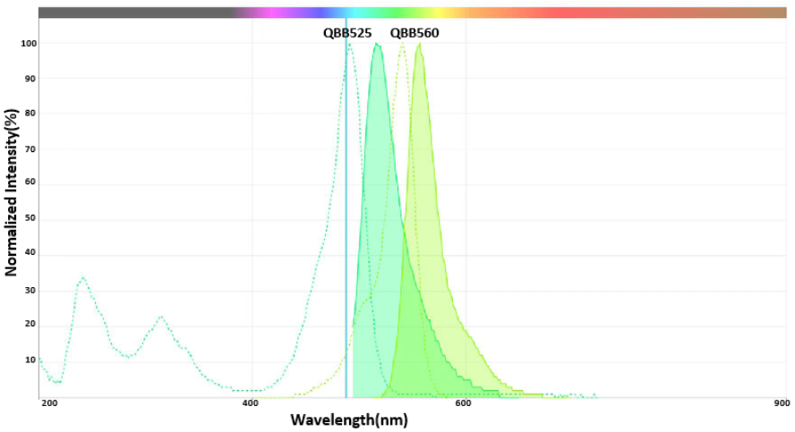 图4. QB染料家族之蓝光系列:QBB520和QBB560
