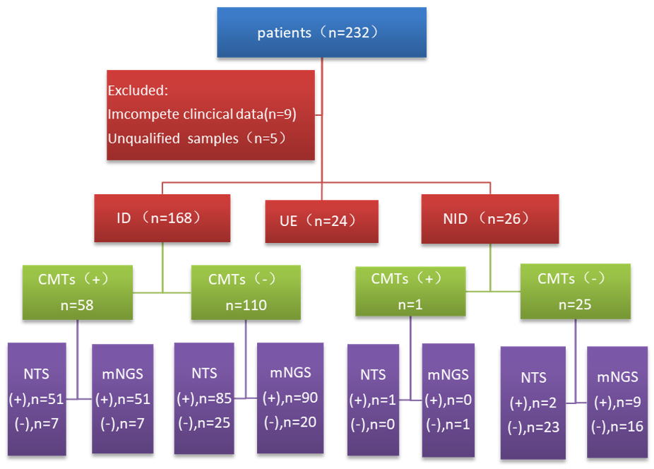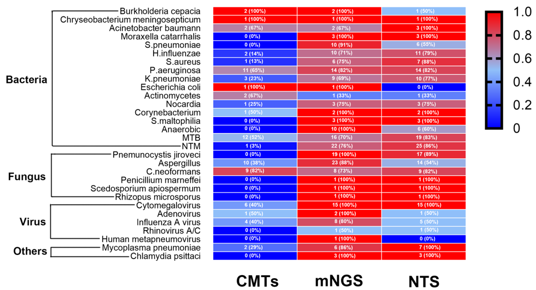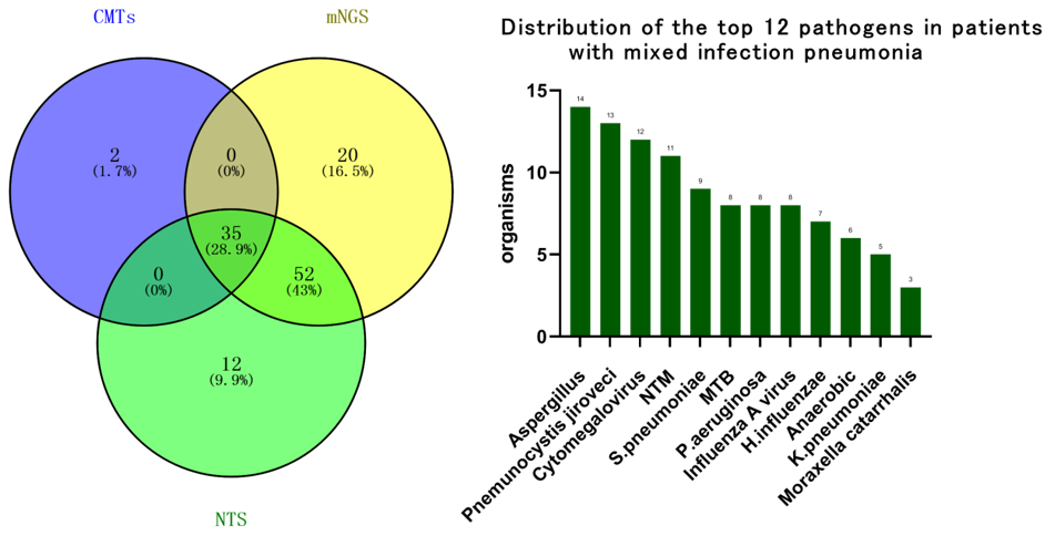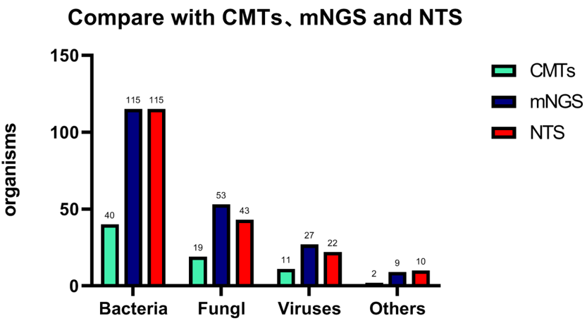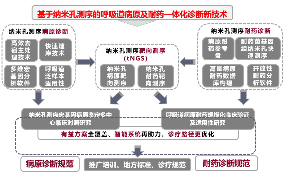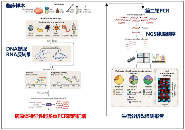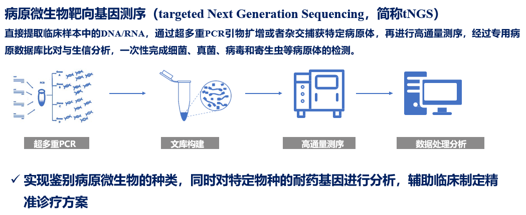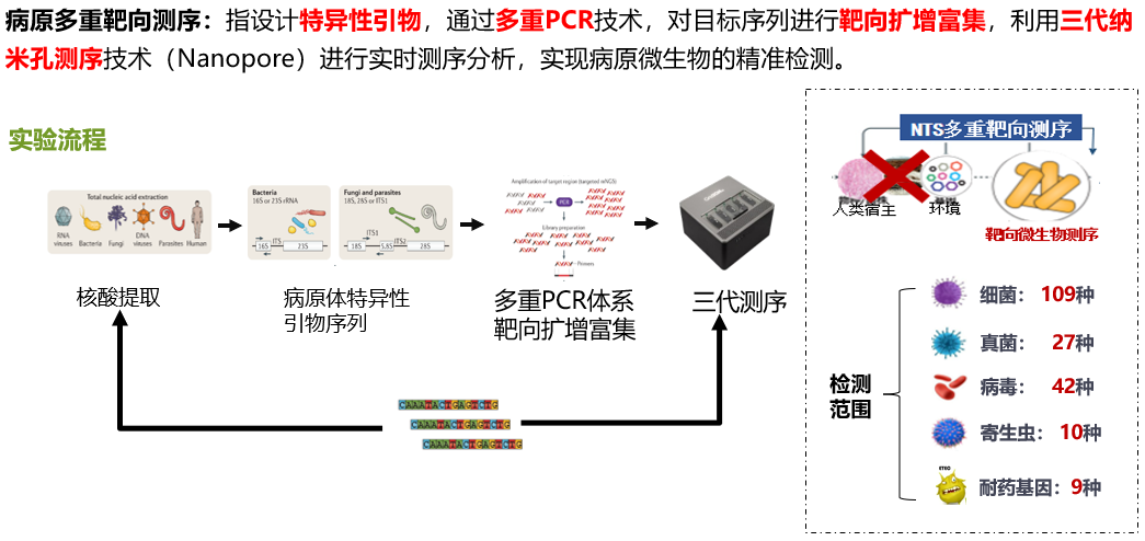 今天与大家分享「基于纳米孔测序tNGS技术诊断肺炎病原体的评估」,下呼吸道感染发病率高、病死率高,是全球第四大死亡原因,在NGS之前,我们有很多传统的病原检测方法,包括直接显微镜观察、核酸检测、培养法鉴定、血清学试验,其中传统分子多重PCR检测简单快速,但检测范围小,需要先假设-后实验-再验证;缺少大量临床重要靶标,而「病原靶向测序(tNGS)」属于核酸水平检测,将样本中目标病原体的核酸进行富集,通过高通量测序平台,得到富集核酸的序列信息,再通过生物信息学手段鉴定样本中的病原体,比传统方法的敏感性更高、比PCR方法的靶标更全、比mNGS技术更便宜经济,整个流程更快,适用于病原学的初筛,剩下的疑难/危重/特殊/罕见病原体交给其它方法如宏基因测序mNGS。 现有病原学诊断手段未能满足临床需求,存在何种挑战? 确定病原体及其耐药性是呼吸道感染治疗的关键,然而还面临多种挑战。 挑战1:二代测序mNGS病原和耐药性鉴定准确性不足。我们之所以选择研究三代测序,实际上是为了将耐药领域纳入其中。二代测序读长短,病原区分度差,耐药性鉴定困难,纳米孔测序是一种单分子、实时测序的新一代方法,读长长,病原区分度佳,耐药性鉴定可行。 挑战2:基于二代测序的mNGS的耐药诊断不成熟。我们在分子药敏、耐药预测方面花费了大量精力,希望通过常见药敏表型和耐药预测为患者提供一些帮助,目前还存在3大难点:关键耐药基因不明确(需建立我国呼吸道病原耐药基因库、遗传标志物库);基因-细菌关联有困难(需构建物种特异耐药谱库、「标志物组合-物种」关联大数据模型);基因型与表型不吻合(还需要基于机器学习的耐药标志物预测策略、大规模临床验证评估、智能耐药分析软件)。 挑战3:mNGS方法价格昂贵。而tNGS是通过超多重PCR与高通量测序的结合,对样本中几十种至几百种已知病原微生物及其耐药基因进行检测。对低浓度的病原微生物的检测,特别是其耐药基因检测,与mNGS相比,具有病原谱范围明确、测序成本低等优势。也就是说,tNGS流程、报告周期更短,费用更低,能够减低成本、覆盖核心病原。 图:tNGS检测原理,超多重PCR/杂交捕获 + NGS = tNGS tNGS和mNGS的区别? 我们可以看看tNGS与mNGS的技术路线对比,tNGS实验步骤:1、样本总核酸提取(包括人的核酸,致病菌,定植菌核酸等);2、富集目标病原体的核酸;3、通过高通量测序平台,获得靶向捕获后核酸的序列信息;4、数据分析。mNGS实验步骤:1、样本总核酸提取(包括人的核酸,致病菌,定植菌核酸等);2、总核酸片段化,末端修复,加A,链接测序接头,文库扩增;3、上机测序,合并;4、数据分析(20Mreads,分析需要计算资源多)。 因此,tNGS和mNGS在技术上最大的区别在于,tNGS存在目标病原体的富集。有了目标病原体的富集,对「去除人源化」方面的要求会更低一些,我们能够花费更少的精力和成本去实现去人源化,并将主要目标放在「富集」方面。从下方的对比图可见,正是由于测序平台的差异,临床诊断方法学也大致分为了靶向和非靶向两大类,两者的差异在于测序前是否针对性的富集某些特点的基因序列,或者是随机放大全部的核酸分子。 在二代测序的病原菌诊断方法(对所有核酸进行随机无差别扩增)上,靶向测序的技术由于集中对关心的病原菌序列进行扩增、测序分析,期间无需人源化,对目标病原体的检测能力可能会更强;而非靶向测序(mNGS)需要复杂的去人源操作,随机无差别扩增。 国际上有很多文献探讨「病原核酸富集」,它有利于低载量核酸检测、具有信噪比优势,基于富集后的tNGS技术基本不检测人源核酸,降低了「噪音」;减少数据量也就降低了检测成本;当靶向富集,放大靶向信号时能够提升灵敏度。 tNGS技术识别病原体的效果如何?优势和劣势在哪? 做tNGS检测有两个策略,第一个是采用多重扩增法。我们采用的是188种病原体+9种主要耐药基因,认为效果不错,引物的干扰较少超多重PCR扩增并非无限扩增病原体,当引物过多时,需要考虑引物之间的干扰。 我们将188种病原体+9种主要耐药基因扩增后,利用三代纳米孔测序技术进行实时测序分析,一些企业还采用探针捕获方法测序,下表为李培教授提供,探针捕获技术:扩增产物较长,更适合于大型病毒及高遗传多样性病毒的分析;PCR扩增子:扩增后的基因产物长度较短(150-200 bp),更适合于预期多态性较低的场景。我个人认为探针捕获法测序已经是界于传统tNGS和mNGS之间的方法,能覆盖的病原体更多,但检测周期也会更长。 我们tNGS初步尝试所采用的方法是建立纳米孔tNGS的规范化流程,188种病原体+9大类耐药基因,浙江省大约10个中心参与临床研究,收集了232例临床符合肺炎诊断的患者,对这些患者进行了肺泡灌洗,肺泡灌洗液分为三份:一份用于院内传统的病原学检测,包括涂片培养和一些常规的PCR检测;第二份使用院内的mNGS二代测序方法;第三部分使用NTS,即基于三代测序的tNGS测序。在入组的232例患者中,我们发现有168例是真正在住院时被诊断肺部感染的;有26例最初符合肺炎诊断标准,但实际上并非肺炎,例如机化性肺炎或间质性肺炎;还有24例我们认为最终诊断并不明确,所以没有再分析结果。 在168例最终诊断肺部感染的患者中,传统方法明确了58例病原体、111例没有明确病原体;在58例传统方法明确病原体病例中,NTS明确了51例,mNGS也明确了51例;在传统方法阴性病例