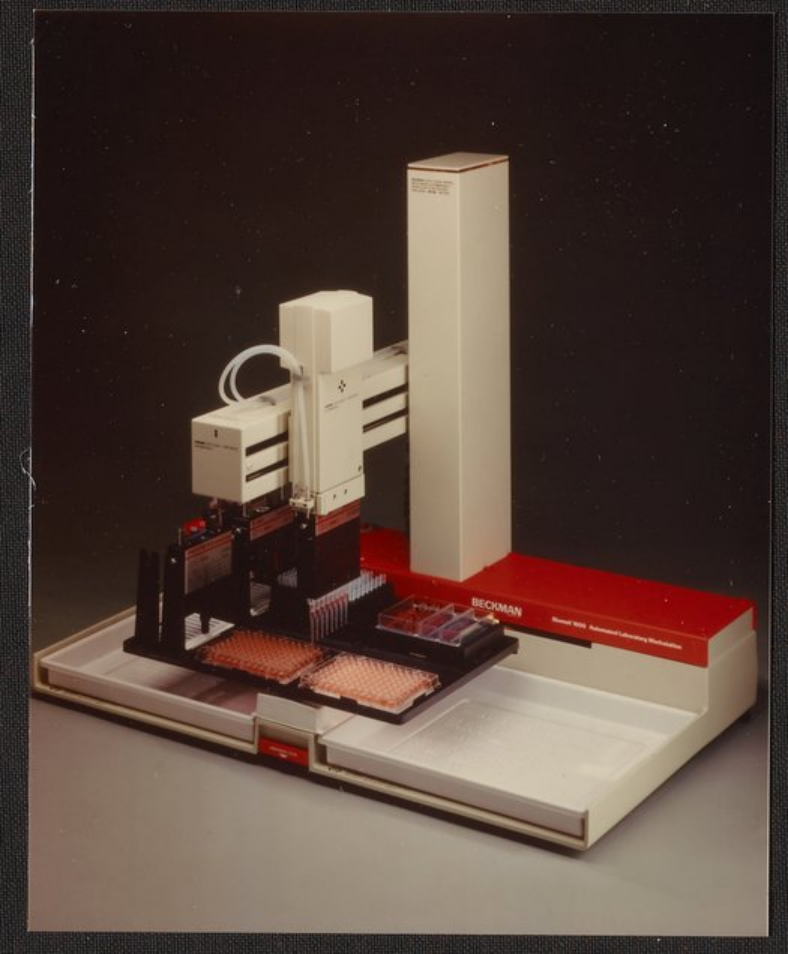 也是1986年,得益于一年前收购了液体处理设备公司Infinitek,贝克曼·库尔特(Beckman Coulter)推出Biomek 1000,它由垂直机械臂、移液工具、洗板机单元、Masterflex® 泵、定位平台和附件组成。是基于移液吸头的液体处理工作站。