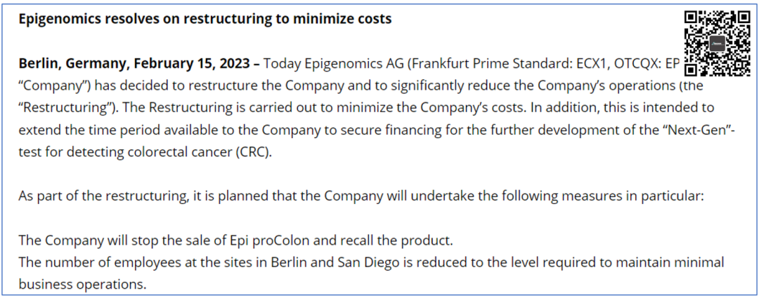 此前,跟大家聊过德国的肠癌早筛公司Epigenomics…的裁员,不过这个名字大家有点陌生。如果我说博尔诚,那么大家可能就比较熟悉了,可以说当年就是博尔诚把Epigenomics 的Septin9 肠癌甲基化试剂盒引入国内的。 不过,博尔诚跟Epigenomics的故事比较复杂,有机会我们再聊。 今天,主要聊的主角是Epigenomics。 戏幕开,戏幕落 在2023年2月15日,Epigenomics发布公告,宣布公司将进行重组。 主要动作之一,是停止销售公司的Epi proColon肠癌早筛产品并进行召回。 其二是裁员,公司将对柏林和San Diego两个区域进行大规模裁员,只保留最低限度运行所需的人员。 时至今日,事情又有了新进展。 2023年7月24日,Epigenomics发布公告,宣布公司几乎所有资产都已经出售。 Epigenomics已经与美国CRO公司New Day Diagnostics达成协议,后者将收购Epigenomics所有的专利和生物样本。 看到这里也许有点小疑问,为啥一个CRO公司要收购IVD产品呢? 别急,后面,咱们聊。 本次交易,Epigenomics将获得180万美元的预付款,总计交易额将可能达到1205万美元。 不过,似乎New Day的资金也不咋充足,根据协议,预付款也将分3批支付。 分别是协议完成付50万美元,2023年12月1日付100万美元,2024年6月30日支付30万美元。 Epigenomics预期自己将从Epi ProColon和其下一代产品的商业化中持续取得分成,直到2043年专利到期为止。 这里面有意思的一点是New Day Diagnostics也是刚刚与另外一家公司并购,而这家名为EDP Biotech的公司。 而恰恰是这家公司,解释了为啥一家CRO要收购IVD企业的资产。 供需对接 霜降三候 EDP Biotech成立于2005年,总部位于美国田纳西州的Knoxville,拥有CLIA认证的实验室。 疫情期间,承接了COVID-19的检测,可能因此累积了部分的资金。 当然,其对Epigenomics的需求来自其2019年推出的肠癌早筛产品ColoPlex。 与我们目前熟悉的QPCR甲基化检测不同,ColoPlex使用的是Luminex xMAP技术,检测靶标是蛋白。 根据公开资料,检测的应该是血液中的hepsin、IL-8和OPG。 而凑巧的是,Epigenomics的产品正是基于血液中生物标志物。 虽然,标志物不同,但是样本库里面的样品是实实在在的。 EDP收购之后,既可以用样本库中的样本继续开发ColoPlex下一代产品,也可以直接继续开发Epi ProColon下一代产品。 完完全全的供需对接了,可以说是双赢。 肠癌早筛进入新阶段 在美国市场,Exact Sciences的Cologuard一枝独秀,基本上处于主导地位。 在最新公布的BLUE-C临床研究中,Excat把肠癌早筛的特异性和敏感性都提高到了前所未有的地步。 那么,这就给了其他公司极大的想象力和压力。 一方面,吃下一点市场就能撑个半死。 2022年,Cologuard的收入高达13.85亿美元,这种超十亿的单品怎么能不眼馋呢? 另一方面,由于Cologuard极强的产品力和性能指标,要想挑战他的市场地位,还是要拿出点真东西。 这里面,感受比较深的就是Guardant了。 当年,Guardant Health的Shield肠癌早筛临床数据一出来投资人就直接扭头就跑。 几乎立即,Guardant的股票就打了个8折,从40多美元直接掉到30多美元,不知道的还以为是美国黑色星期五提前了。 当然,这并不能让人望而却步,反而让追赶者发起一波波的冲击。 这里面,咱们国内可是参与者众 国内玩家 稍加梳理,我们发现在肠癌早筛领域,国内参与者众,变现渠道似乎有开始明朗的味道。 主攻toC的诺辉健康是一极,其他医疗渠道的也是一极。 当然,这不是说而这不能互相进入对方的领域,就看谁的护城河深,谁经营的更精细。 而变现渠道的拓宽,依然还是需要关注的关键的关键。 商保这条渠道能不能探索,这不是个问题,而是商保进行差异化竞争的必然趋势。 这一点,我们在此前探讨华大与中国太平合作的时候,就已经阐述过。 只有水深河宽,才能万类霜天竞自由。 也只有打出差异化,才能赢得未来。 对于早筛产品如是,对于保险产品也如是。 END |