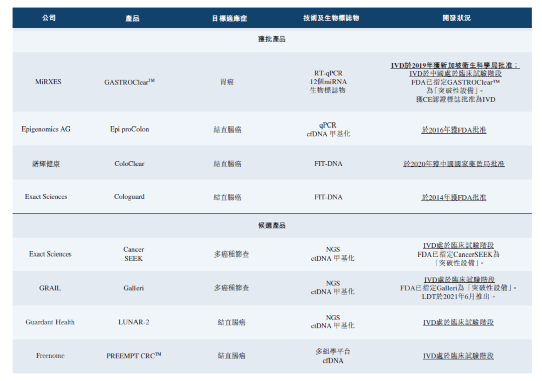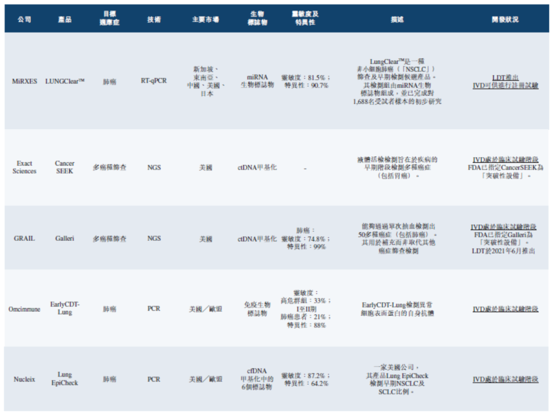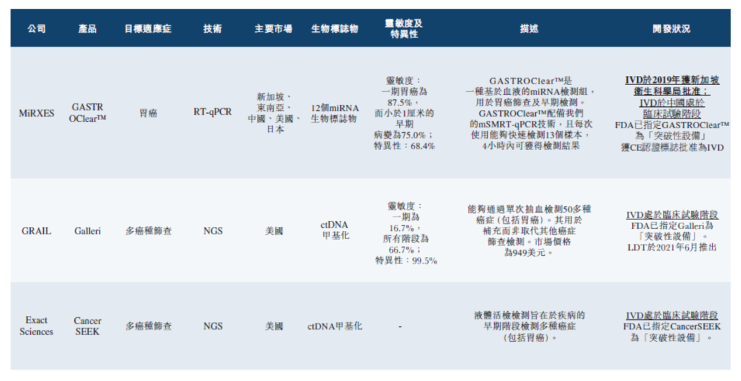 | 近期,Mirxes Holding Company Limited(简称“Mirxes”,觅瑞)递交港交所上市申请。来源:港交所官网、高禾投资研究中心觅瑞已完成四轮融资,融资金额达到1.45亿美元,投后估值为6亿美元。觅瑞成立于2014年,是一家全球领先的RNA液体活检公司,专注于血液cfRNA与cfDNA的研究,同时整合蛋白质、影像学及流行病学等信息,通过多维度机器学习模型的开发,重点布局全球常见高发癌种早筛早诊的业务管线;同时产品也覆盖了心血管疾病、代谢性疾病与传染病等领域。借助公司的自有专利mSMRT-qPCR技术平台,觅瑞在胃癌、肺癌及乳腺癌早筛领域开展了多项研究,并在Gut、PNAS、Cancers等国际期刊发表了多篇研究成果。2020年,由觅瑞发起,联合哈佛大学医学院贝斯以色列女执事医学中心、新加坡诊断研发中心、新加坡卫生科学局、强生旗下杨森公司、新加坡国立大学等学术及临床机构,制订了微小核酸首个国家(新加坡)标准,并且将于近期纳入ISO体系认证,从而引领并推动微小核酸诊断产业快速、规范化发展。2019年,由觅瑞自主研发的全球第一款血清胃癌分子诊断试剂盒GASTRO ClearTM在新加坡获批上市。同年,觅瑞入选由Nature Biotechnology杂志评选出的“全球液体活检创新企业榜单”,是唯一来自亚洲的上榜企业,同时也是榜单中唯一的miRNA技术平台企业。目前,觅瑞已开发了两个业务分部,即(a)早期检测及精准多组学分部,于该分部下,其提供各种疾病早期检测产品(包括核心产品GASTROClearTM)及服务、多组学候选发现及临床基因组检测,及(b)传染病分部。细分来看,早期检测业务上,觅瑞的重点在于开发、生产及商业化可进入大众市场的miRNA早期检测试剂盒产品。该等检测试剂盒产品采用在PCR仪器上进行简单血液检测的形式,以检测与各种疾病相关的miRNA生物标志物。在精准多组学业务方面,觅瑞则专注于为生物制药公司、政府机构以及学术及临床机构提供复杂的、以miRNA为中心的多组学检测解决方案。目前,觅瑞的核心产品GASTROClearTM为全球首款也是唯一一款获批准进行胃癌筛查的分子诊断IVD产品。招股书介绍,GASTROClearTM为一个由12种miRNA生物标志物组成的用于胃癌筛查及早期检测的基于血液的miRNA检测组。GASTROClearTM已于2019年9月获得HSA的C类IVD证书后成功商业化,且已于2017年11月获得CE认证标志。今年5月,GASTROClearTM获得了FDA的突破性医疗器械称号,这使觅瑞成为首家在基于血液的miRNA诊断检测领域及胃癌分子诊断检测领域获得FDA突破性医疗器械称号的公司。今年3月,觅瑞于中国完成GASTROClearTM注册临床试验的患者招募,招募约9400名受试者,且其为全球最大的分子早期癌症筛查前瞻性临床试验。其计划于2023年第四季度前向中国国家药监局提交注册申请。而其另一款产品,FortitudeTM试剂盒为全球首批获批准的COVID-19 RT-qPCR检测试剂盒之一。疫情期间,觅瑞已为约35个国家开发、生产及部署FortitudeTM COVID-1诊断试剂盒。财务方面,2021年、2022年和2023年前四个月,觅瑞分别实现营收约6065万美元、1776万美元和578万美元,其中,2022年的收入相比2021年减少了70.7%。对此,招股书解释称该减少乃主要由于传染病业务分部收益减少。对应利润约为-308万美元、-5620万美元和-2159万美元。截至本招股说明书签署日,朱兴奋博士、周砺寒博士及邹瑞阳博士为公司联合创始人。朱兴奋博士因其于miRNA、衰老及慢性衰老疾病细胞与分子机制领域的专长而知名。自1998年起,彼一直为新加坡国立大学副教授。朱教授目前也为新加坡国立大学癌症研究中心执行委员会成员,在此之前担任BTI的兼职科学研究员,并担任A*STAR生物转化创新平台前任首席科学家。朱教授已撰写逾150篇出版作品。朱教授于2021年12月荣获总统科学技术奖(「PSTA」),该奖项为新加坡授予杰出研究科学家及工程师的最高荣誉,以表彰彼等于科学技术领域的优异成就、周砺寒博士于定量聚合酶链反应技术、基因送递、肿瘤靶向纳米颗粒及纳米结构增强型临床分析检测等领域拥有逾18年研究经验,并发表了22篇代表性论文。周博士于新加坡-麻省理工学院学术联盟下属的新加坡国立大学担任研究员,先前亦于A*STAR担任研究科学家。邹瑞阳博士于生物技术领域拥有逾15年研究经验,并发表了19篇代表性论文。邹博士于新加坡国立大学担任研究助理,并于生物处理科技研究所(「BTI」,一家由A*STAR资助的新加坡国立研究所)担任研究科学家。成立至今,觅瑞已获得复朴投资、Rock Springs Capital、高榕资本、华润正大生命科学基金、建银国际、EDBI、诺辉创投(由“中国癌症早筛第一股”诺辉健康参与成立的基金)、Keytone Investment Group、晨岭资本、三井物产株式会社、榕泉生物、诚通基金等知名机构的投资。招股书显示,觅瑞已完成四轮融资,融资金额达到1.45亿美元,投后估值为6亿美元。癌症筛查提供商能够提供癌症筛查作为IVD产品及LDT服务。最常见及广泛使用的癌症筛查方法为IVD产品,包括拟用于诊断、监测、筛查和评估疾病倾向的试剂、仪器和系统。IVD产品作为医疗器械受到监管,这意味著制造商通常需要进行临床试验来证明此类器械在诊断特定情况方面的效能及安全性,才能获批准于市场上商业化。相较而言,LDT是一种在单个实验室进行的诊断检测服务,且通常获豁免若干要求,如获得市场批准。IVD和LDT均可用于测量或检测人体样本中的一种或多种分析物,如蛋白质、