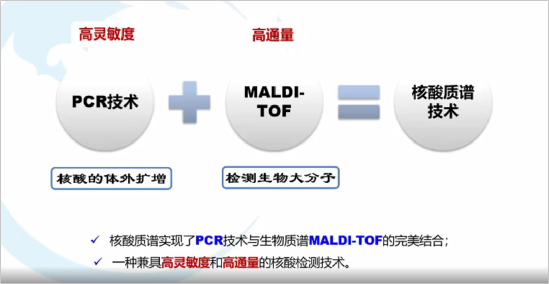 质谱就是对“质量”进行精确检测的精密设备,质谱可以用来检测蛋白质和代谢物,也可以用来检测核酸。核酸质谱成为PCR和NGS之后的又一个分子诊断的新兴平台,也是临床诊断领域快速发展的未来平台之一。