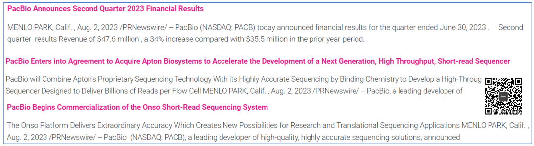 本该成为主角的财报成为配角,这到底是人性的…呃,不好意思走错片场了。 2023年8月2日的PacBio,还是非常热闹的,值得我们详细来聊聊。 财报成了配角 2023年8月2日,本来是PacBio的财报日。 结果,当天PacBio来了个公告三连发,而其中有2条跟其短读长测序平台Onso有关,活活把财报变成了配角。 不过,就算是配角,该走的程序也不能少。 根据PacBio公布的8-K文件显示,2023Q2总营收4757.3万美元,同比2022Q2的3546.7万美元增长34%。 毛利率方面,2023Q2毛利1554.6万美元,毛利率33%;同比2022Q2的1619.3万美元和46%的毛利率都有所下滑。 这倒是可以理解,毕竟Revio刚开始导入,毛利率不高可以理解。 亏损方面,2023Q2亏损6983.3万美元,虽然同比2022Q2的7139.4万美元只是略微下降,考虑新产品的导入,还是控制的不错了。 从产品端可以看出来Revio以45台的绝对优势宣告了对Sequel II/IIe系统的替代(当然说替代并不完全恰当),而去年Sequel II/IIe出货量只有36套,提升明显。 但是,试剂耗材从2022Q2的1460万美元左右下降到了1370万美元。 这说明第一个可能,Revio处于导入期,原有Sequel系统的耗材的消耗下降。 第二个可能,Revio本身的试剂耗材比Sequel便宜,以数量换规模的转变点还没有达到。 但是,这一切都不重要,因为主角是Onso。 PacBio+Omniome=Onso 2021年7 月 20 日,PacBio 宣布与生物技术公司 Omniome 达成并购协议,以 8 亿美元价格收购 Omniome 。 Omniome使用独有的Sequencing By Binding(SBB)测序技术,将NGS测序的准确度推高到Q40(>90%)。 2022年6月8日在AGBT大会上,PacBio宣布在2023年H1该测序系统将“commercial availability”。 一年后的2022年10月25日,PacBio正式将此款测序平台命名为Onso。 2023年1月11日,在JPM2023大会上PacBio宣布Onso售价29.5万美元,15美元/Gb,400-500M reads/FC。 2023年8月2日,PacBio宣布Onso商业化出货(所以,是超期了哦)! 那么,这次的冤..哦不,第一个吃螃蟹的是谁呢? 正是最近很火的City of Hope旗下的TGen(Translational Genomics Research Institute),他们将成为第一个收到Onso系统的单位。 不过,这并不意味着Onso就必然能够大卖,彻底改写NGS市场的游戏规则。 原因很简单,NGS的准确性只是支撑其应用的一角而不是全部。 测序速度和足够便宜的价格,才是占领市场的不二法门。 毕竟,MGI已经实现sub-100$/genome,您给来个1500$/genome谁扛得住? 而Onso基于的SBB测序化学需要通过两次反应才能延伸1个碱基,造成天然的测序速度劣势,PE150的测序要48小时左右。 不用说跟MGI华大智造的DNBSEQ-G99去比,那样太不公平,就是比“年代久远”的MGISEQ-200相比都毫无胜算。 那么,PacBio该如何为Onso补齐这两块短板? PacBio+Apton=? 时至今日,大家也不用猜了。 PacBio带来的方案就是买买买,当然这并不是批评PacBio,反而个人认为这是一种比较好的策略。 原因很简单,如果市面上有很好的解决方案,那么是不是比自己吭呲吭呲一点点闭门造车要好呢? 也因此,2023年8月2日,PacBio宣布收购Apton Biosystem这家创业公司。 收购对价为预付款8500万美元,全部以股票形式支付,约630万股PacBio股票。 另外有2500万美元milestone将在Apton技术构建的高通量测序平台营收达到5000万美元时成熟,将以股票、现金或者股票+现金的形式支付,总收购对价可能达到1.1亿美元。 那么,Apton有什么技术?能够解决什么问题呢? 还有,在Apton技术加持下,进化了的Onso又应该叫啥呢? Apton之秘技 Apton Biosystems成立于2012年,总部位于旧金山湾区,创始人为Bryan Staker和Linda Liu。 其中Bryan在此之前是Complete Genomics(CG)的硬件系统总监,而Linda Liu则是在Life开发测序和PCR试剂开发工作。 现任CEO John Hanna是Veracyte前CCO(Chief Commercial Officer,首席商务官),2021年4月加入Apton。 根据Crunchbase的数据,Apton收购前融资到A轮,总计拿了3160万美元的投资,不过PacBio说Apton拿了5700万美元,那应该PacBio的数据更可信点。 Apton拥有39项授权专利和49项申请中专利,其中最核心也最让PacBio心动的可能是2点。 通过前面的介绍,我们知道Onso的SBB测序技术有两个短板,第一就是芯片密度较小,造成单价成本过高;第二就是测序速度不够快,很难跟其他平台匹敌。 那么,Apton的秘技绝活将怎样解决这2个问题呢? 第一,更低的价格。 Apton秘技:表面化学+先进的图像处理技术。。 能够将单位面积的Reads数提高,也就是说,在相同大小的芯片上拿到更多的数据,这显然能够降低试剂消耗,进而降低成本。 而基于机器学习和物理技术,Apton能实现40nm/像素的分辨率,达到单分子识别。 这保证了在高密度芯片的情况下,新的测序系统仍然能准确识别碱基。 第二,更快的测序速度。 Apton秘技:通过硬件-软件集成,加快图像采集速度和处理能力,也能够提高测序速度。 虽然,这并不是最优解,好歹也算是一种解题思路。 还有个事,这个新系统叫HT SBB是否有点草率…好歹 Onso HT也算是一脉相承… 从这个略显潦草的名字,再加上刚刚收购这个节点,显然HT SBB的参数基本不具备解读的价值。 强行对比的话,1Billion的Reads也就NextSeq 2000或者MGISEQ-2000,Element AVITI水平附近。 三板斧 最后我们稍微总结下,PacBio稍微打破了下业绩会的常规,试图通过Onso商业化出货和收购Apton来构建一个长短结合的测序工具终极供应商,想法很好,不过路不一定好走。 原因有很多方面,在长度长领域,PacBio是否还能继续领先要打个问号。 随着纳米孔测序的持续涌现,PacBio面临着现实的不可忽视的竞争压力。 短读长方面,作为新入局者,其测序准确度确实