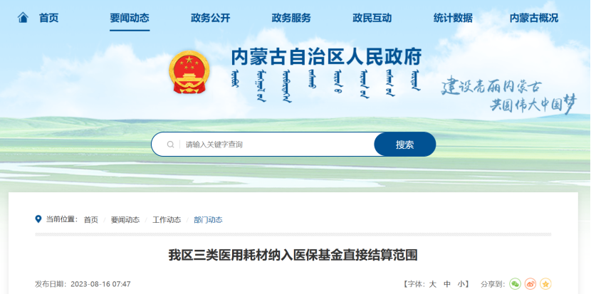 企业排队等回款,医院“有选择性”的回款……医疗反腐环境下,医院与企业的“三角债”带来的灰色空间也正在消失。大批耗材,纳入直接结算范围 8月16日,内蒙古自治区人民政府官网发布《我区三类医用耗材纳入医保基金直接结算范围》一文,其中显示,内蒙古自治区将省际联盟集中带量采购的心脏起搏器、弹簧圈和冠脉导引导管三类医用耗材纳入医保基金直接结算范围,有效解决医疗机构结算货款不及时问题。