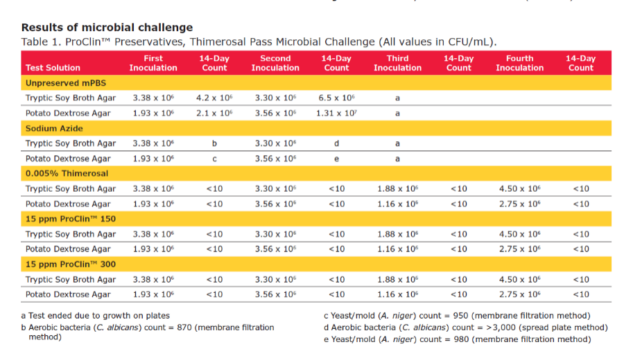 微生物是造成生物试剂污染的主要来源之一,而,防腐剂为预防微生物污染提供了有效的解决方案,它是一类能够杀灭或抑制微生物生长的化学物质,在液体试剂中发挥着重要的防腐作用。 点击查看高清图片 一项来自于独立实验室的研究通过比较Proclin™ 150, Proclin™ 300,硫柳汞以及叠氮化钠对于绿脓杆菌、大肠杆菌、金黄色葡萄球菌、伯克霍尔德菌、白色念珠菌以及黑曲霉的抑制效果,进一步证明Proclin™ 150和Proclin™300防腐剂可以提供比叠氮化钠、硫柳汞更好的保护。 点击查看高清图片 研究使用纯化的小鼠IgM作为抗原,山羊抗小鼠IgM偶联HRP作为检验抗体,研究了ProClin™ 300防腐剂对抗体结合的影响,显示:ProClin™ 300防腐剂对HRP偶联抗体的结合能力没有影响。 × 数值为三个独立实验的平均值 在推荐使用浓度范围内,ProClinTM不会引起任何危害健康、毒性及后处理问题。做为高频使用的生物防腐剂,购买时无需繁杂的许可证办理,方便储存与使用。有效解决了叠氮化钠等剧毒抑菌剂购买流程复杂、仓储&使用管理要求高的局面。 环境友好 安全无毒 方便购买 稳定供应 在选择配方时,有几个关键差异需要考虑,即盐含量,基质材料,保质期。四种配方在推荐的使用浓度上,均安全且环保。ProClinTM 300是我们最受欢迎的产品,因为它不含镁盐,而且保质期为三年;ProClinTM 950最适合在极端PH值或温度下工作。 点击文末“阅读原文”查看完整产品清单 宠粉福利等您来领! 即日起至9月30日, 扫码申领 5ml 试用装 *收到申请后,我们会尽快审核并安排销售同事与您联系。 *样品数量有限,活动时间可能与因实际参与及发放数据有所调整 *本活动最终解释权归默克所有 |