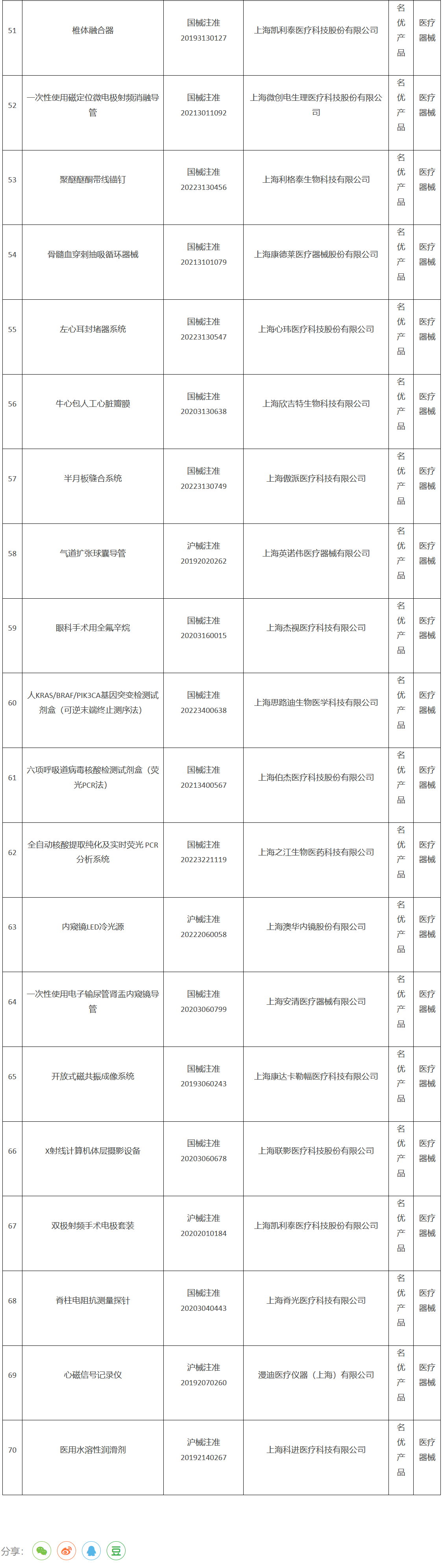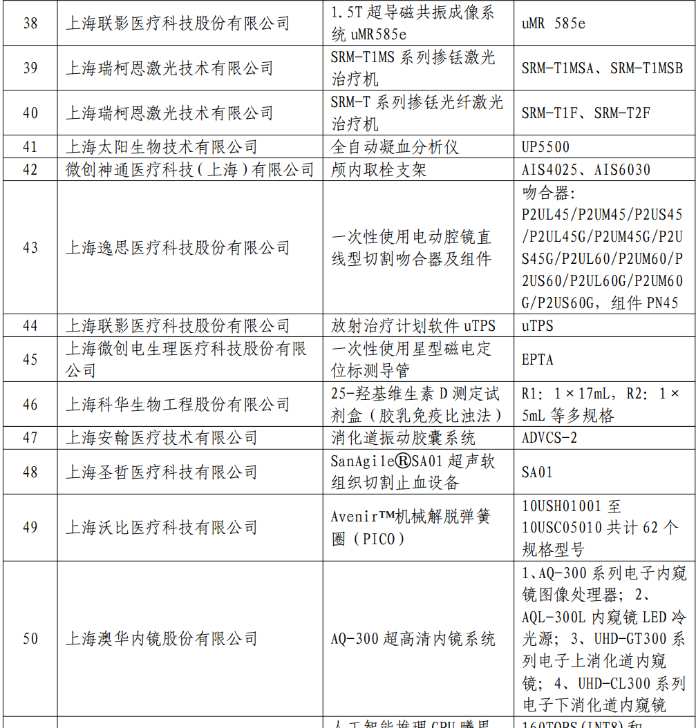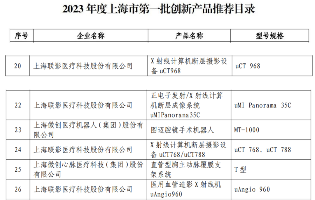 《2023年度上海市第一批创新产品推荐目录》(器械部分)