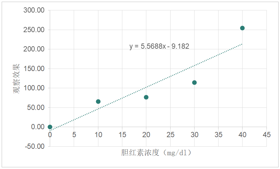 根据回归曲线可以得出胆红素的最小干扰浓度为37.56mg/dl。