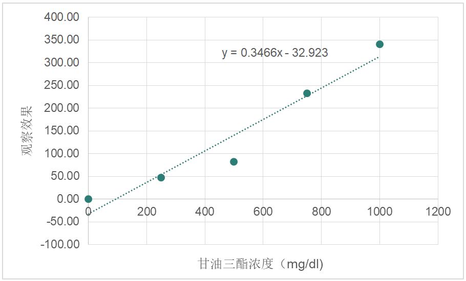 根据回归曲线可以得出甘油三酯的最小干扰浓度为671.96mg/dl。