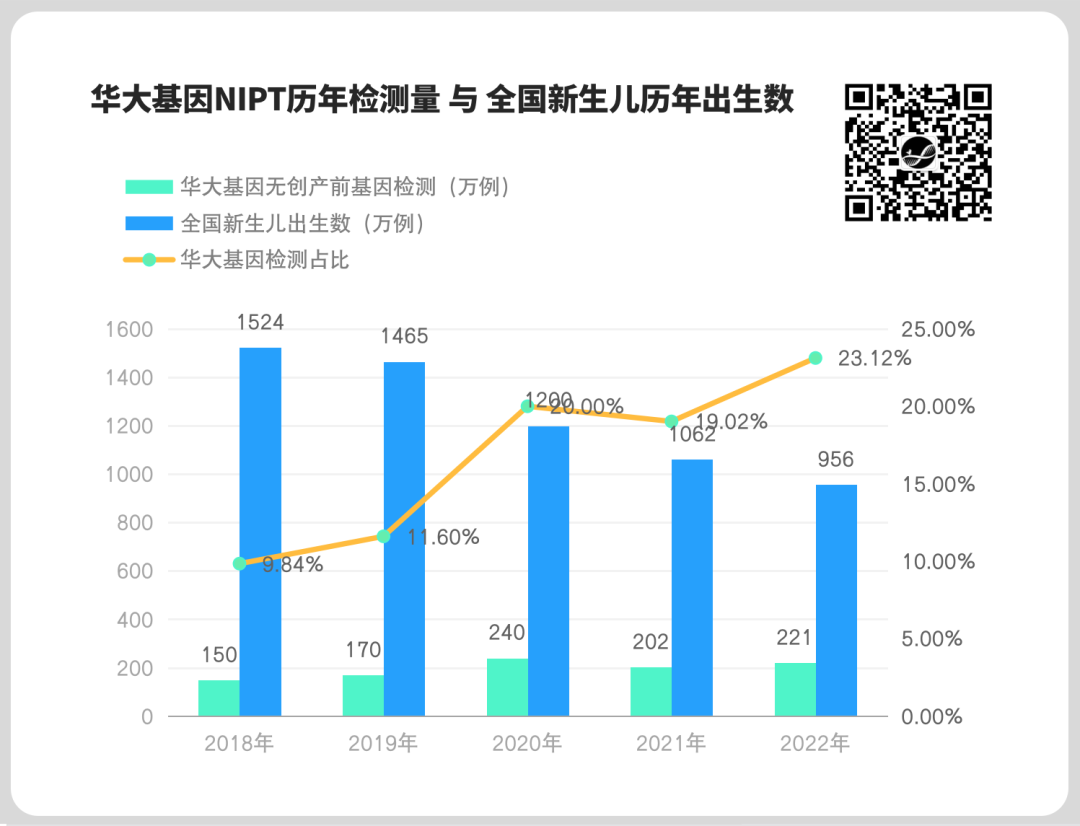 不确定时代,什么可以穿越行业周期? 这是新冠放开后的第一个半年报,IVD企业尤为惨烈。暴跌的业绩、糟糕的股价在媒体端与股民间相互强化,悲观情绪弥漫开来。突然而至的医疗反腐更是给了整个医疗市场一记重锤。 一片肃杀与萧条之下,信心从何而来? 今天,我们把目光再次聚焦在基因检测龙头华大基因。 在“📎 起底华大基因”的姊妹篇中,我们以6年视角、跨越新冠周期来分析了这家企业,更聚焦在其常规业务的表现、机会与风险。 而今天,我们把“华大基因”放在时代的洪流中,看看这家企业如何在历次环境巨变中艰难转身,包括:新冠的来与去、出生人口的断崖下跌的背景、基因行业价值遭遇质疑、LDT/医疗反腐等政策的影响、出海之路。 除了这些,比行业中其他企业更为幸运的是,华大还被迫“独享”一份美国商务部的制裁。这也让华大及所属领域成为中美大国博弈下的时代缩影。 龙头的际遇,便是行业的际遇。对于行业而言,没有一鲸落而万物生,只有一荣俱荣、一辱俱辱。透过华大,我们能否看到当前行业各个赛道面临的挑战与可见的未来? 今天,我们只聊变化、聊增长,直面悲观/乐观数字下的另外一面,看到韧性,看到信心。 01 “ 因为暴涨,所以暴跌。” 时间拨回到2020年1月, 新冠发现之初。 1月23日凌晨2点,除夕夜前夕,武汉宣布封城。大年初二早上,时年65岁的汪建,经长沙转车,抵达武汉。 这应是华大基因历史上意义重大的一张照片。 几天后,华大启动了与武汉政府合建的新冠核酸检测实验室,命名为“火眼”实验室。从设计到施工,到投入运营,仅仅用了5天时间,日均检测能力到达万人份,快速弥补了武汉当时核酸检测力量不足的问题。 这是华大“火眼”实验室的第一次正式亮相。 虽然仓促,但无论是源于“火眼金睛、明辨妖邪”的这个有着良好寓意的名字,还是logo中的这一抹鲜亮的红色,都给当时恐慌的人们以相当的慰藉。 为什么要重新提及这个故事? 站在当下这个时间节点,我们猛然发现,华大已在全球30多个国家运营超百座“火眼”实验室,这也成为其新冠期间业绩支撑的核心力量。