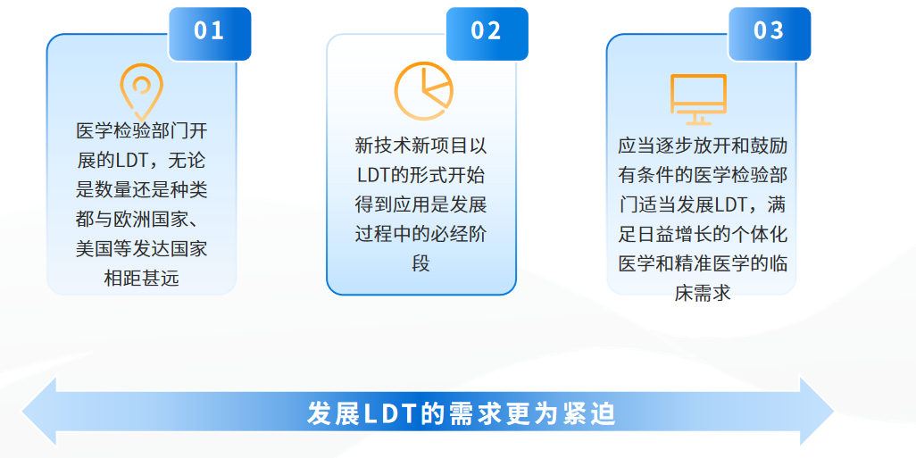 2021年2月9日,国务院发布最新版《医疗器械监督管理条例》(将于6月1日起施行),其中第 53 条提到“对于符合条件的医疗机构,可根据单位需求自行研发在国内暂无上市产品的体外诊断试剂,在医师指导下使用。”这将促进实验室自建检测方法(LDT)的发展,更好地助力精准医疗。