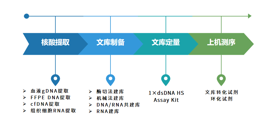 作为一种新型分子诊断技术,NGS检测不仅难以沿着传统IVD产品的市场准入路径快速获批和应用,而且在院内开展还有诸多硬件和人员方面的条件不成熟。这不仅加大了NGS产业的发展风险和负担,也阻碍了部分患者从中受益。NGS的临床应用离不开LDT。 图1.我国LDT发展现状 在国家政策逐步放开和鼓励有条件的医学检验部门适当发展LDT的背景下,翌圣推出LDT解决方案,一方面为第三方医学检验实验室服务,简化入院流程,节约入院成本,另一方面为有条件的医院中心实验室提供原料和性能验证服务,来满足日益增长的个体化医学和精准医学的临床需求。 图2.翌圣LDT整体解决方案 翌圣生物在NGS LDT入院已积累了丰富的经验,从NGS试剂供应到协同入院服务,我们提供完整解决方案;NGS要想真正地在医院内落地,很大程度上依赖性能优异的建库试剂盒。 图3.NGS建库流程 翌圣DNA建库和RNA建库拥有优越的产品性能,同时匹配华大智造MGISP-960,实现全自动化、标准化、规模化建库,成为LDT入院的好伴侣。 13577针对 300bp 的单一片段样本,使用 UDI 短接头(12405)时,连接效率为 95%,使用单端长接头(13519)时,连接效率为 93%。 图4.不同接头连接效率对比图 13577与竞品试剂在3种样本上建库,13577产量最优。下机数据捕获率、平均捕获深度和I*品牌相当,且与3家竞品试剂相比,13577 Dup值最低。 图5. 不同样本不同品牌文库产量及数据质量图 以100 ng 常规gDNA为模板,使用12195构建文库,片段化条件分别为37℃ 5/10/ 15/20/30 /40min,PCR扩增6个循环,文库峰型完美媲美机械法建库。 图6.不同酶切时间的文库主峰和产量图 以不同投入量的小牛gDNA为模板,使用12195搭配illumina&MGI长接头构建文库,最终文库产量12195优于竞品。 图7.不同样本不同品牌文库产量图 数据质量综合评分 12309ES测序数据对比到中华家系一号的参考数据集,以分值来代表SNR和RC的综合水平。 Great!12309ES的数据质量评分高达9.733 与标准物质参考数据集的基因表达差异倍数的准确性评价结果:12309ES的测序结果与中华家系 1 号全转录组 RNA 标准物质标准参考数据集差异分析,Pearson相关系数>0.94,基因定量水平具有高准确性。 图8.基因表达差异倍数与参考数据集一致性分析结果
