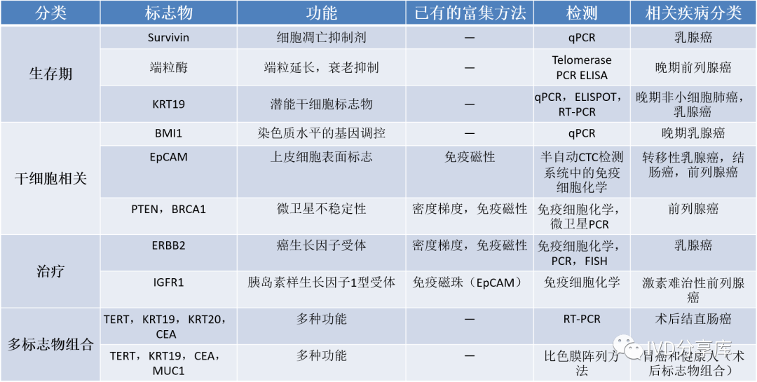 图1、常见的循环肿瘤细胞分子标志物及其检测应用 (Bin仔绘制)