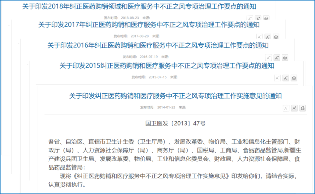 这场将持续一年的医疗反腐风暴已经卷了接近2个月,从各个角度都能感受到其力度之强和对行业的影响之大。那么,医药反腐从何而来,终将去往何处?身处医药健康行业的我们,该如何应对,如何锚定发展方向?小编回答不了这个问题,不过我们可以一起从近25年的反腐历程,挑几个关键词或者事件回顾下,说不定能找到一些眉目和启发。 大时代背景:计划经济到市场经济 ➣ 计划经济时期(1949-1980) 计划经济时期的医院全部由政府管控,建立了我们现在较为熟知的三级医院结构,即 ▸ 城镇由市、区两级医院和街道、厂矿门诊组成的三级医疗服务及卫生防疫体系; ▸ 农村以县医院为龙头、以乡(镇)卫生院为枢纽、以村卫生室为基础的三级医疗预防保健网络。 所有的医疗设备、医务人员均由国家统一分配管理。 这个时期,国家机关、人民团体和事业单位实行的是“公费医疗制度”,医疗费用由国家财政按人头拨付。城镇企业职工实行的“劳保医疗制度”,由企业医疗卫生费、福利费和奖励基金合并的“企业职工福利基金”负担。 公务员和城镇职工自己生病不需要花一分钱,甚至亲属也可以享受到半劳保或统筹医疗。然而,这种全部免费的医疗模式带来的却是医疗资金的大幅增长及医疗资源的浪费。 问题一:国家财政及企业无法承担高昂的医疗费用,公费医疗、劳保体系难以为继 计划经济时期,医疗服务收费标准由财政部门和各级卫生管理部门共同制定,医疗服务降价后医院收费价格低于成本,这个差价需要国家进行财政补贴。而补贴不足让医院陷入了经营困难,收治越多、亏损越多。医院的亏损还导至医疗经费不足,缺少足够的资源进行医生培养、新技术的学习推广,导至了医疗技术的落后。 问题二:医院亏空严重,医学技术落后 与城镇相比,在农村,执行的是集体经济下的医疗保障,公社承担大部分的医疗费用和“赤脚医生”的工资,个人就医支付少量费用,政府在防疫、低价药品等方面提供有限的财务支持。但实际上,很多农村公社的资金有限,加上国家财务支持不足,造成了农民医疗保障水平低,农村缺医少药的情况。 问题三:城乡医疗保障资源分配不均 ➣ 市场化医疗时期(1981-1997) 伴随着改革开放的春风,市场化医疗的帷幕缓缓掀开。医院丢掉了部分福利机构的属性,开始在资本的市场里厮杀。 首先,医院的准入和管制被放开,个体诊所、民营医院、外资医院如雨后春笋一般出现,卫生机构数量从1978年的17万家增长到了1996年32万家。公立医院的产权制度也开始转变成股份制、股份合作制。 医院的营收从国家全权负责变成了自负盈亏,政府对公共卫生投入的比重逐渐下降,财政投入从1980年占卫生总费用的36%下降到1998年的16%。 医疗服务价格部分放开,主体仍由政府定价,专家门诊、特级诊室、各种优质服务项在报销范围之外的可以适当提升收费标准。 相比于医疗服务只放开了一个小口,药品流通管制则是打开了闸门。 计划经济时期药品采购商采取的是集体采购、逐级调拨的制度,1984年开始,药厂、三级药品采购站均可直接向医院、药店进行供货,药品流通格局发生巨变,我们现在熟知的药代地推模式便始于此。 在药品价格方面,虽然国家对三类药品实行政府定价和政府指导价,但很多药品由经营者自主定价。药品进入医院后会加价15%左右以保障医院的利润,医院为了盈利往往会选择价格高、利润丰富的药品进行采购,造成了药品价格的普遍增加。 但由于改革开放后农村合作社名存实亡,民营企业数量也逐渐增加,农民和城镇普通居民的医疗保障几乎进入了“真空期”。卫生部进行的“第二次国家卫生服务调查”显示,1998年城市居民自费医疗的比重为44.13%,农村居民自费医疗的比重达到了87.44%。 市场化医疗解决了计划经济时期医院亏空的问题,让原本亏损严重、效率低下的医院重新焕发生机,医务人员的医疗服务效率、积极性也大幅度提高。 市场化的代价:政府对医疗服务价格的限制和药品采购的开放,让医院进入了“以药养医”模式;“自负盈亏”让越来越多的医院将增加营收作为首要目标,提供更好的医疗服务只是为了吸引患者增加收入的手段。 社会的发展不可能是绝对理想化的,旧问题的解决,往往引发新问题,只能在发展中解决问题,在亚健康状态负重前行,所以1998年以后开启了漫漫医改路,伴随医改而来的是漫漫反腐路。接下来进入医改时代,小编尝试摘录一些关键词进行解构分析。 漫漫医改/反腐路 康有为在论述维新变法构思时曾经说,“举凡四变,一变风气,二变教育,三变实业,四变制度”。借鉴这个架构可以帮助我们更好的理解医改中的各项动作。 ➣ 关键词“管理体制改革” 改革开放后的二十年,我国医药行业取得了较大的发展,同时人民对医药产品的需求也日益增大,但发展过程中也存在管理混乱,政策不完善等诸多问题。 为此,1997年,国务院发文要求加强药品管理,促进医药协调发展,在国家层面建立完善基本药物制度、基本医疗保险制度等,探索药品管理体制改革。 随后,《关于建立城镇职工基本医疗保险制度的决定(1998)》《药品生产质量管理规范(1998年修订)》《中华人民共和国药品管理法(2001年)》等法律法规发布和实施,而我们医疗器械行业更为熟悉的当属2000年国务院发布的第276号令《医疗器械监督管理条例》了。 这个阶段就跟咱