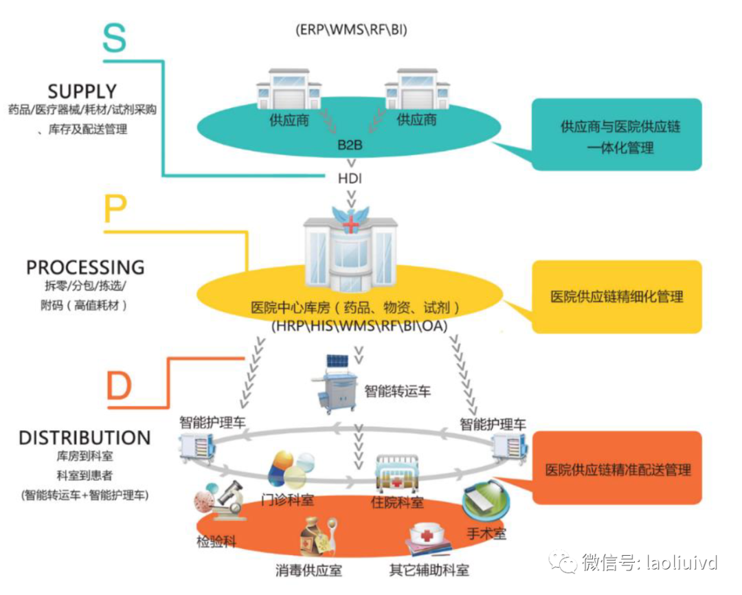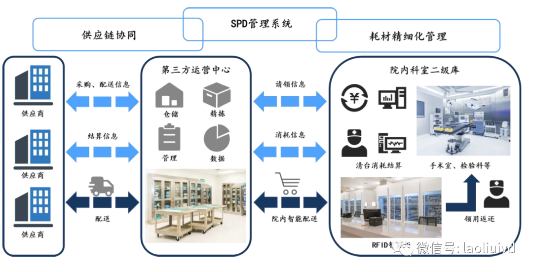 大家好,我是老刘,前几天中日友好医院一则15.8亿的耗材打包刷爆网络,SPD自FF热了一段时间之后,再次成为了热门的话题,今日老刘来聊聊,SPD会不会成为未来检验科的最优解。首先了解一下什么是SPD,SPD 是供应(supplysupply)、加工(processingprocessing)、配送(distributiondistribution)的缩写,指全院医用物资一体化管理模式,通过采用现代化供应链管理方式,帮助医院降本增效。