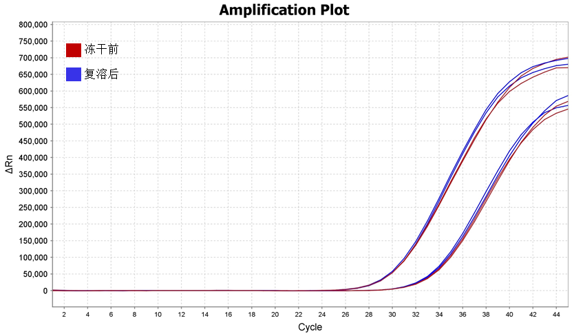 实验3:荧光定量探针法检测冻干前后酶活 图4 荧光定量探针法检测冻干前后酶活结果