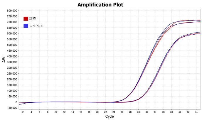 实验结果表明:37℃加速60 d后对扩增性能无影响,酶活稳定,具有更长保质期。