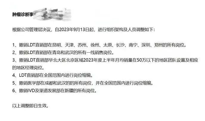 据悉,国内某NGS龙头从9月13日起开始撤销全国多地LDT直销岗位,在全国范围内对LDT直销部进行岗位缩减。