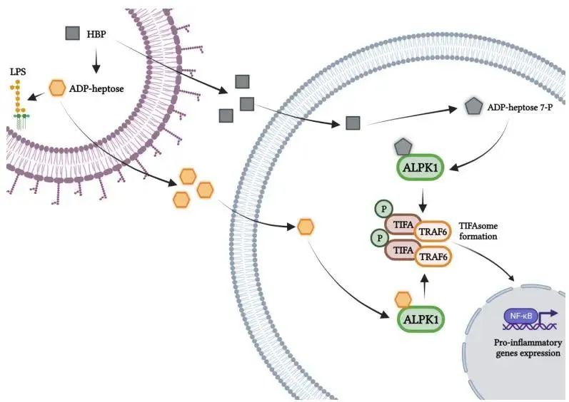 在哺乳动物中,宿主细胞通过模式识别受体(PRRs)精确辨别病原体相关分子模式( PAMPs),启动天然免疫反应并指导适应性免疫应答,从而抵抗病原微生物的入侵。模式识别理论被称作现代免疫学的基石之一,寻找和鉴定新的病原相关分子模式及其相应的模式识别受体是当代免疫学研究中“皇冠上的明珠”。 新的模式识别通路的发现,都会无一例外地开辟新的免疫学研究领域,从而促进人类对免疫系统与病原微生物互作机制的认知。 2018年8月,清华大学生物医学交叉研究院教授、北京生命科学研究所副所长邵峰院士团队在《Nature》在线发表题为(Alpha-kinase 1 is a cytosolic innate immune receptor for bacterial ADP-heptose)的研究论文,首次发现并证明细菌中ADP-heptose(二磷酸腺苷庚糖)进入宿主细胞后结合激酶ALPK1 N-端结构域,并刺激C-端激酶结构域磷酸化活化TIFA,介导III型分泌系统依赖的NF-κB的活化和细胞因子的产生。 此文系统证明了存在于革兰氏阴性菌和部分革兰氏阳性菌中的代谢产物ADP-heptose作为PAMP,能够透过哺乳动物的细胞膜,被作为PRR的广泛表达的ALPK1激酶识别,诱导细胞因子的产生,因此,ADP-heptose具有被用作免疫调节剂和疫苗佐剂的巨大应用潜力。 ADP-D-glycero-β-D-manno-heptose,简称ADP-heptose,中文名称:二磷酸腺苷庚糖,ADP-庚糖等,是细菌脂多糖(LPS)合成过程中的前体代谢产物,存在于革兰氏阴性菌和部分革兰氏阳性菌中。 此前有研究显示,细菌ADP-heptose生物合成通路中的前体分子庚糖-1,7-二磷酸(HBP)在被人为导入细胞后也可再诱导TIFA依赖的NF-κB活化,但研究者进一步发现,HBP不具有自主进入宿主细胞的能力,也不能直接激活ALPK1,但可以在细胞内被腺苷酰转移酶NMNAT活化为二磷酸腺苷庚糖-7-磷酸(ADP-heptose 7-P),二磷酸腺苷庚糖-7-磷酸能够直接激活ALPK1,但活性远低于ADP-heptose。相比HBP,ADP-heptose可以自主进入宿主细胞,激活ALPK1,且活性远远高于HBP。ADP-heptose-ALPK1天然免疫信号通路在抵御细菌感染过程中发挥重要作用,这一全新通路为相关疾病的药物研发提供了靶点。 图1 ADP-heptose和HBP激活宿主免疫反应的机制 图2 ADP-heptose可直接激活ALPK1,且活性高 ADP-heptose-ALPK1天然免疫信号通路在抵御细菌感染过程中发挥重要作用。鉴于ADP-heptose具有自主进入哺乳动物细胞的能力,因此,它也为开发新的免疫调节剂和疫苗佐剂提供了新的概念和方法。 为了更好的助力研究者们对免疫系统与病原微生物互作机制的认知,申基生物潜精研思,通过生物酶法体外催化合成制备ADP-heptose(货号:ADPHP001),并通过多环节把控产品质量,保障产品纯度≥95%!