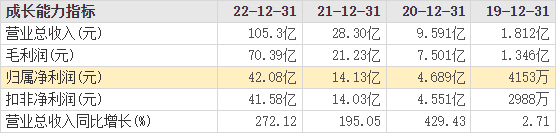明德生物自然也是其中一员,在此期间,即2020年至2022年,实现营收9.59亿元、28.3亿元、105.3亿元,分别同比增长429.43%、195.05%、272.12%;归母净利润4.69亿元、14.13亿元、42.08亿元,分别同比增长1029.24%、201.37%、197.79%。暴增的数据表面,我们看到了什么是百年一遇的机会,同时也预测了短期的突兀、则不太有可持续性。
